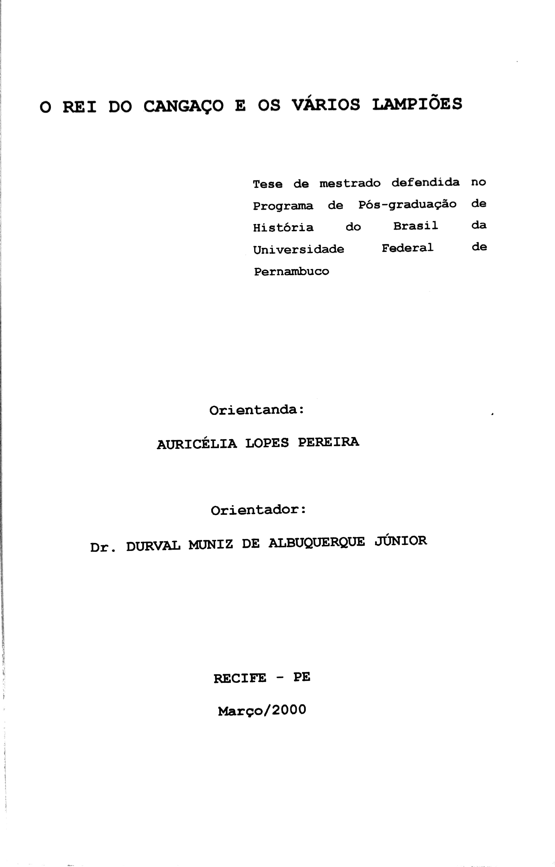 Auricélia Lopes Pereira (Orientador: Durval Muniz de Albuquerque Jr)
