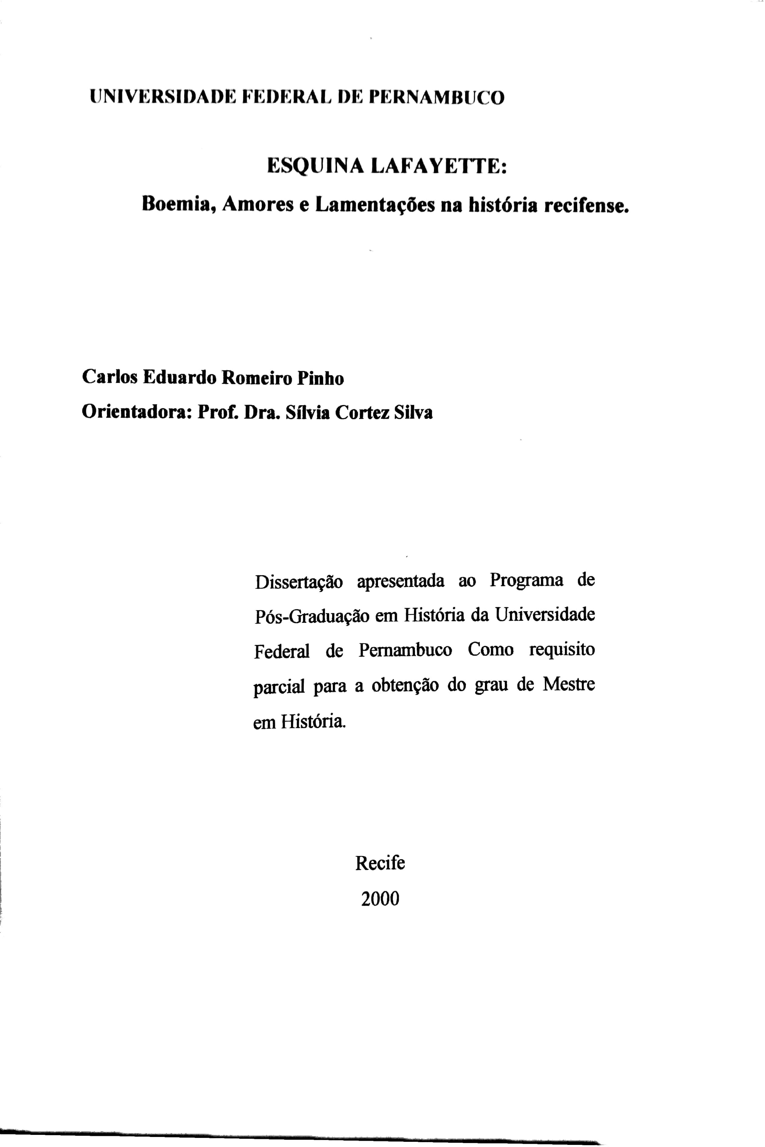 Esquina Lafayette: Boemia, Amores e Lamentações na História Recifense