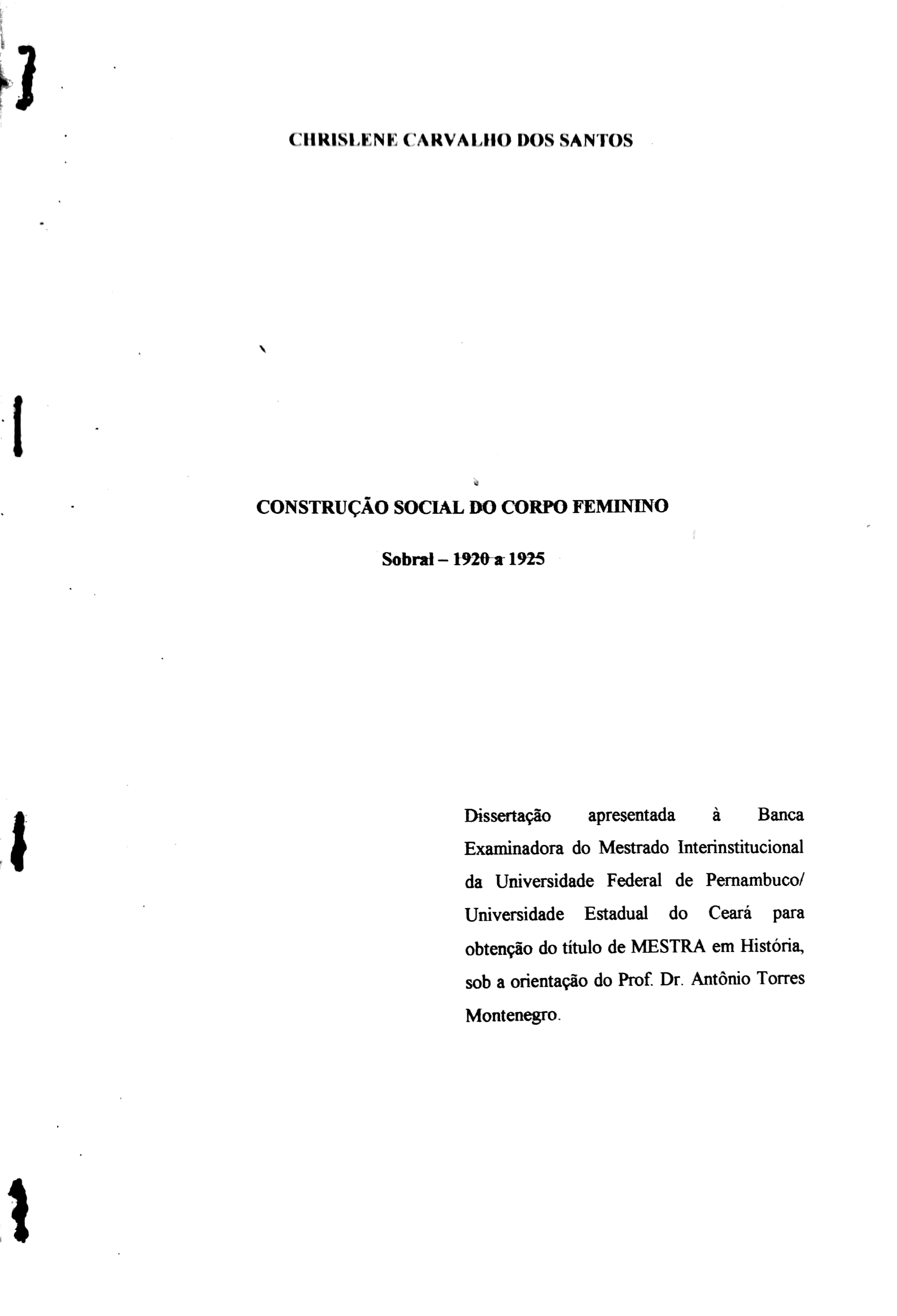 Construção Social do Corpo Feminino: Sobral - 1920/1925