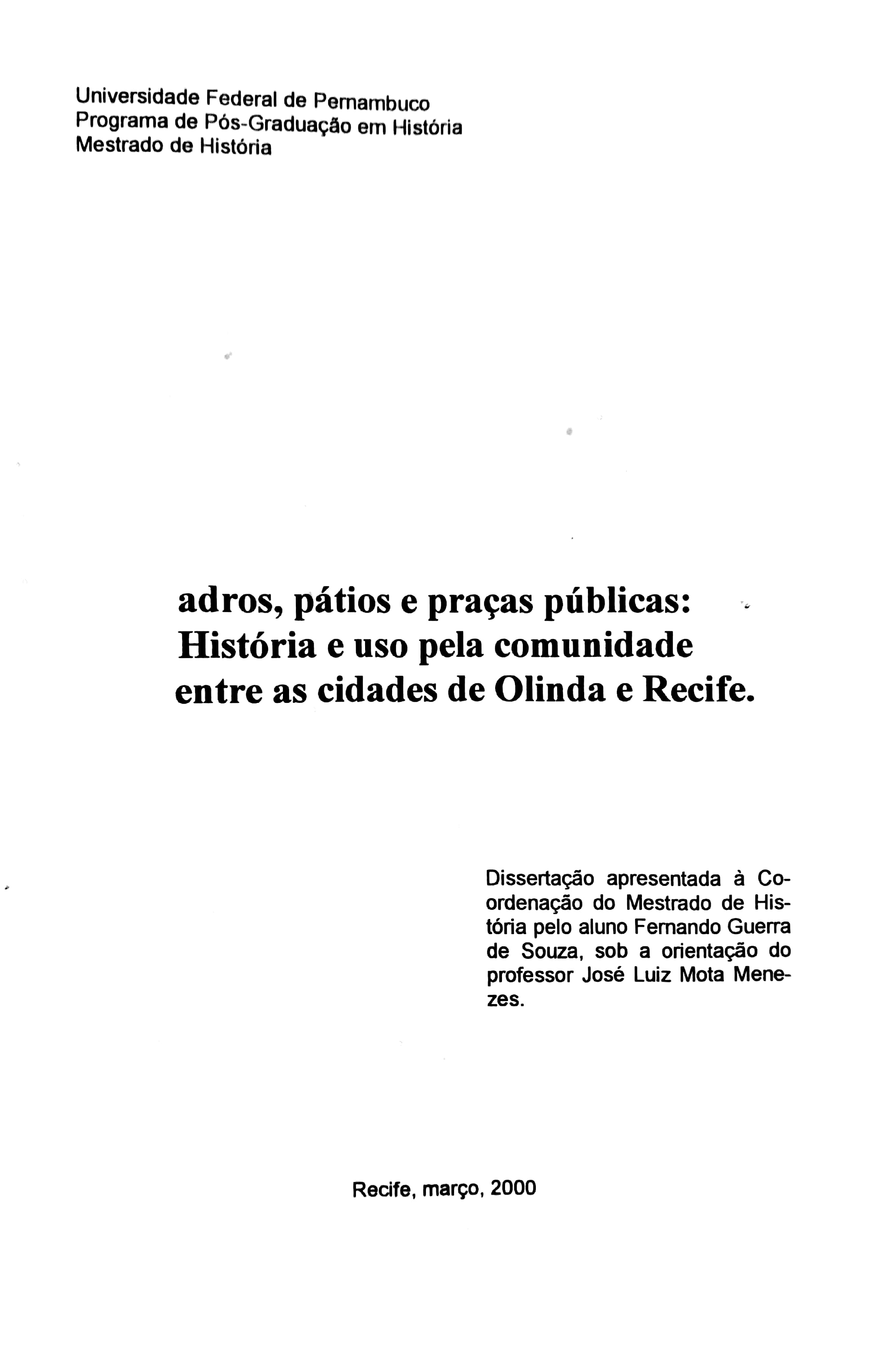 Adros, Pátios e Praças Públicas: História e Uso pela Comunidade entre as Cidades de Olinda e Recife