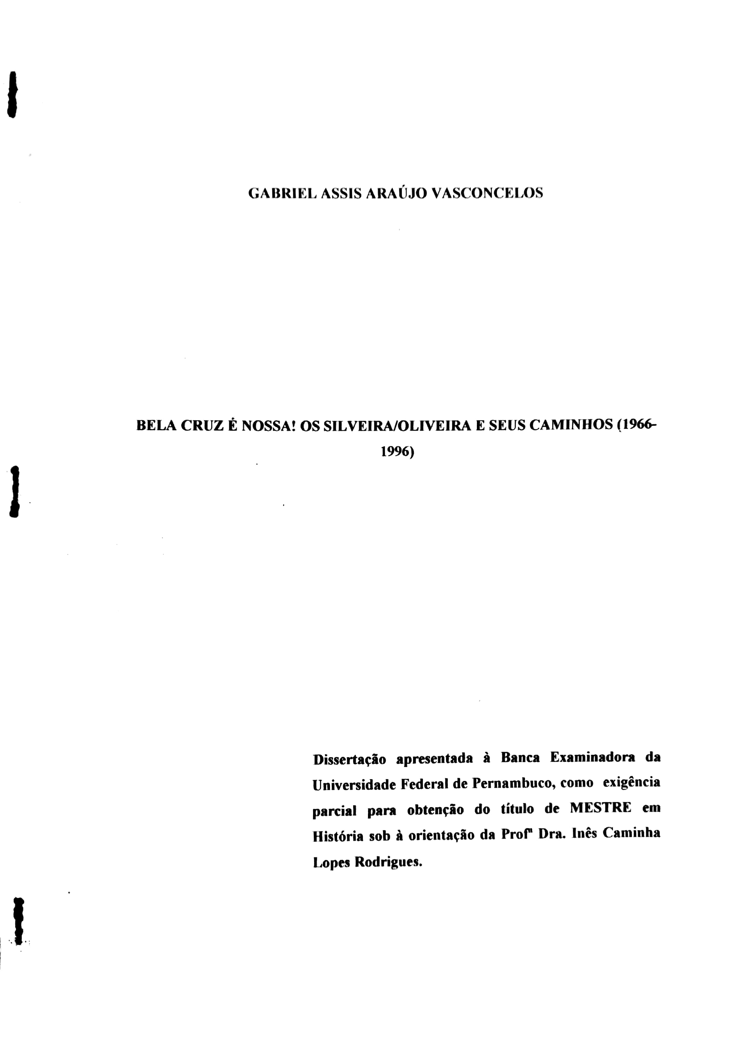 Bela Cruz é Nossa! Os Silveira/Oliveira e seus Caminhos (1966-1996)