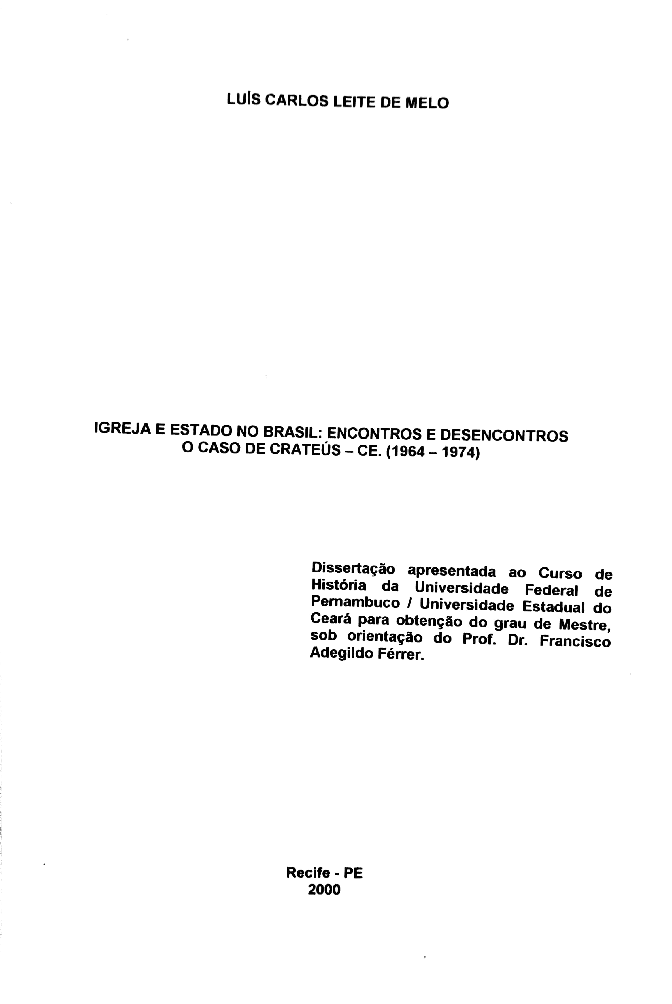 Igreja e Estado no Brasil: Encontros e Desencontros. O Caso de Crateús - CE (1964-1974)