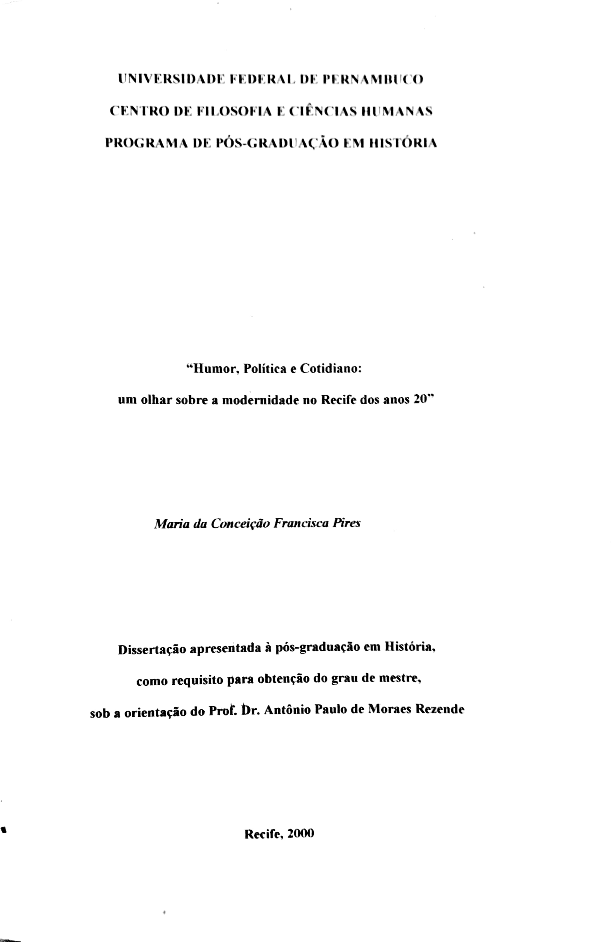 Humor, Política e Cotidiano: Um Olhar sobre a Modernidade no Recife dos Anos 20