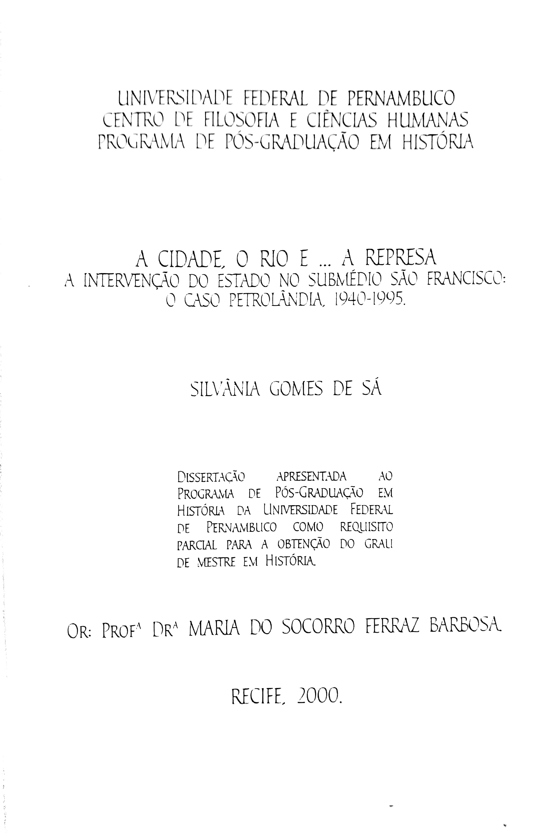 A Cidade, o Rio e... A Represa. A Intervenção do Estado no Submédio São Francisco: O Caso de Petrolândia, 1940-1995