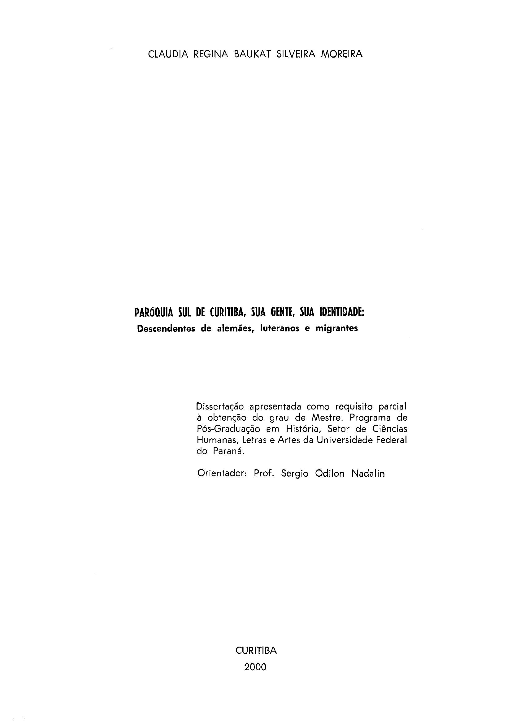 Paróquia Sul de Curitiba, sua Gente, sua Identidade: Descendentes de Alemães, Luteranos e Migrantes