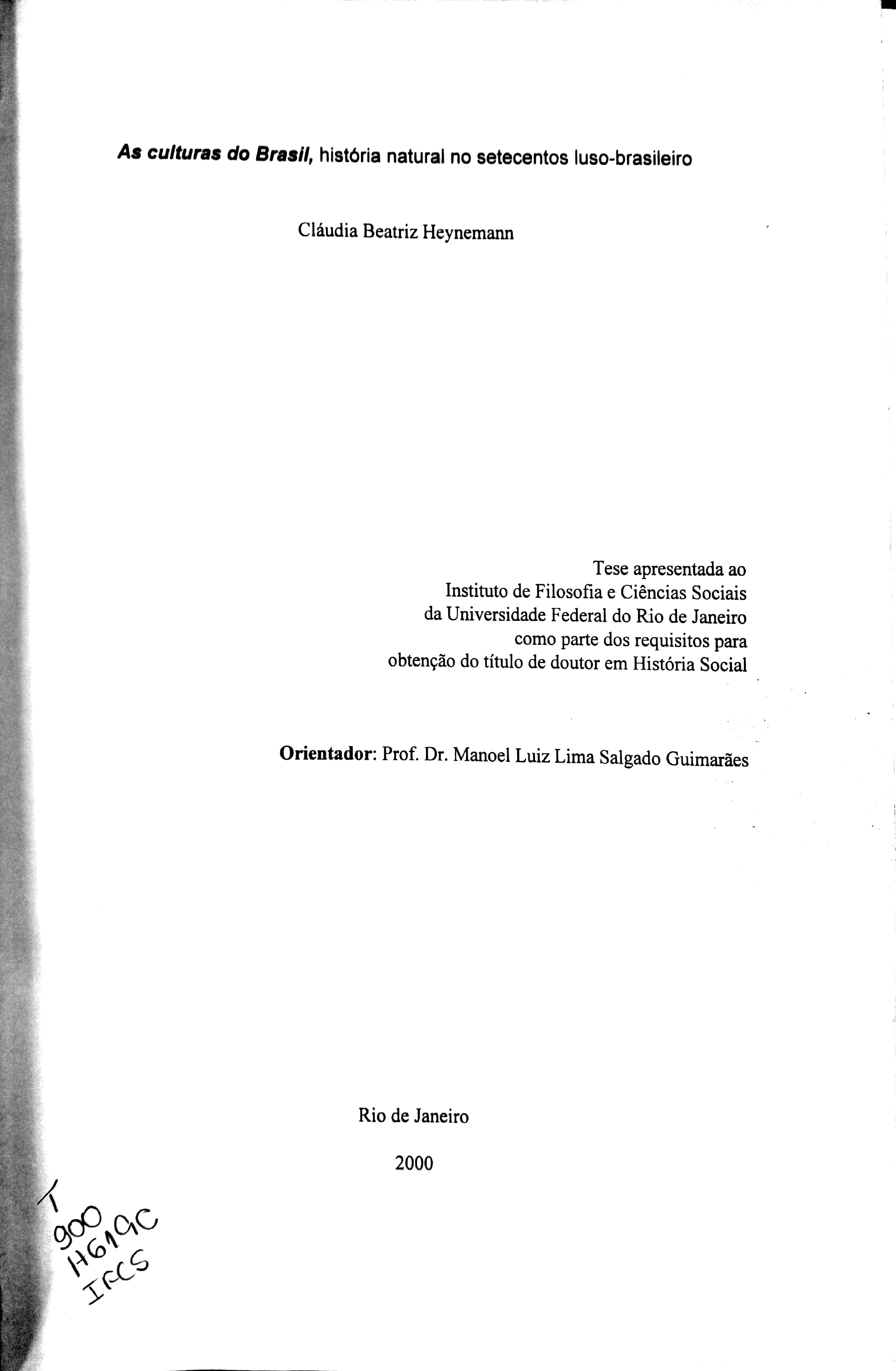 Cláudia Beatriz Heynemann (Orientador: Manoel Luiz Lima Salgado Guimarães)