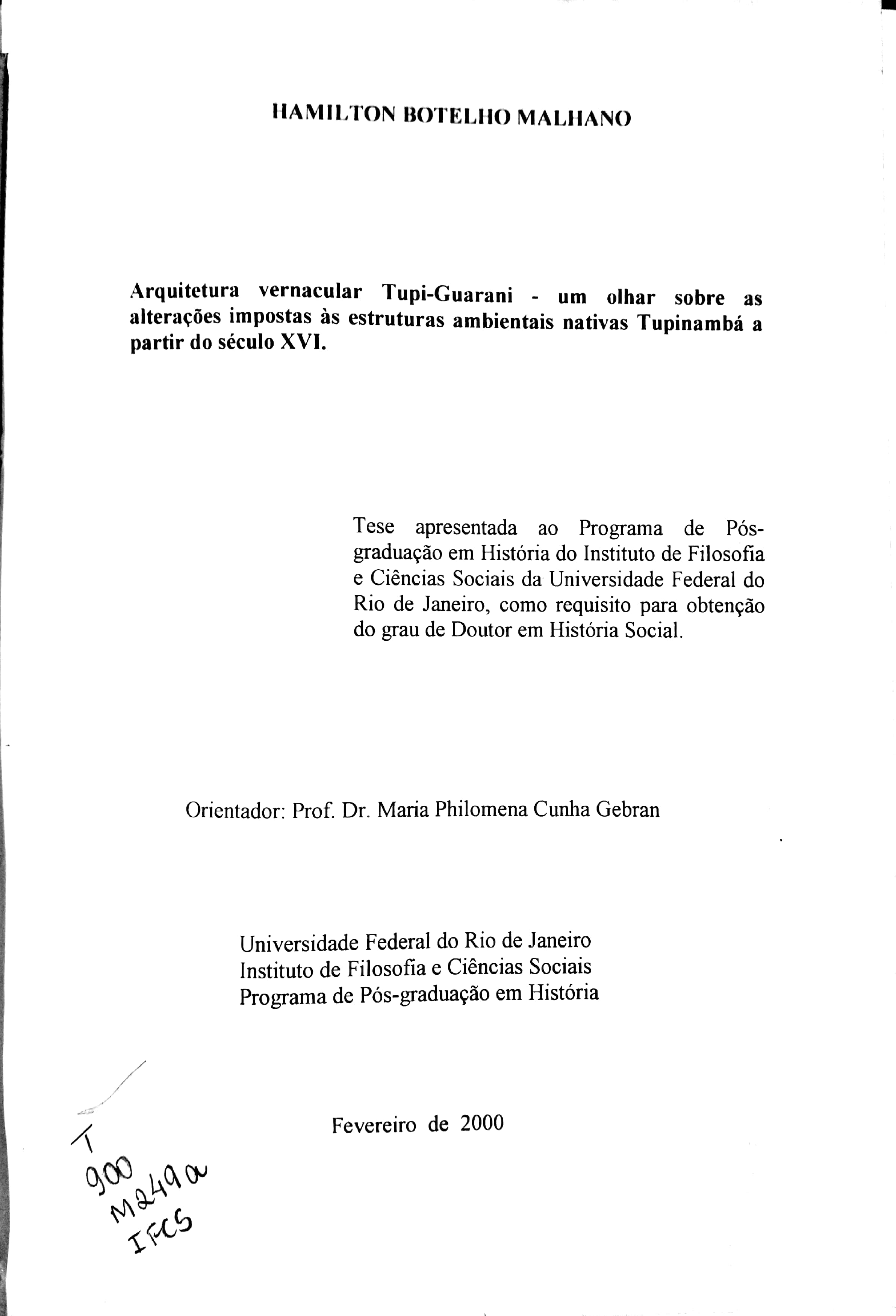 Hamilton Botelho Malhano (Orientador: Maria Philomena da Cunha Gebran)