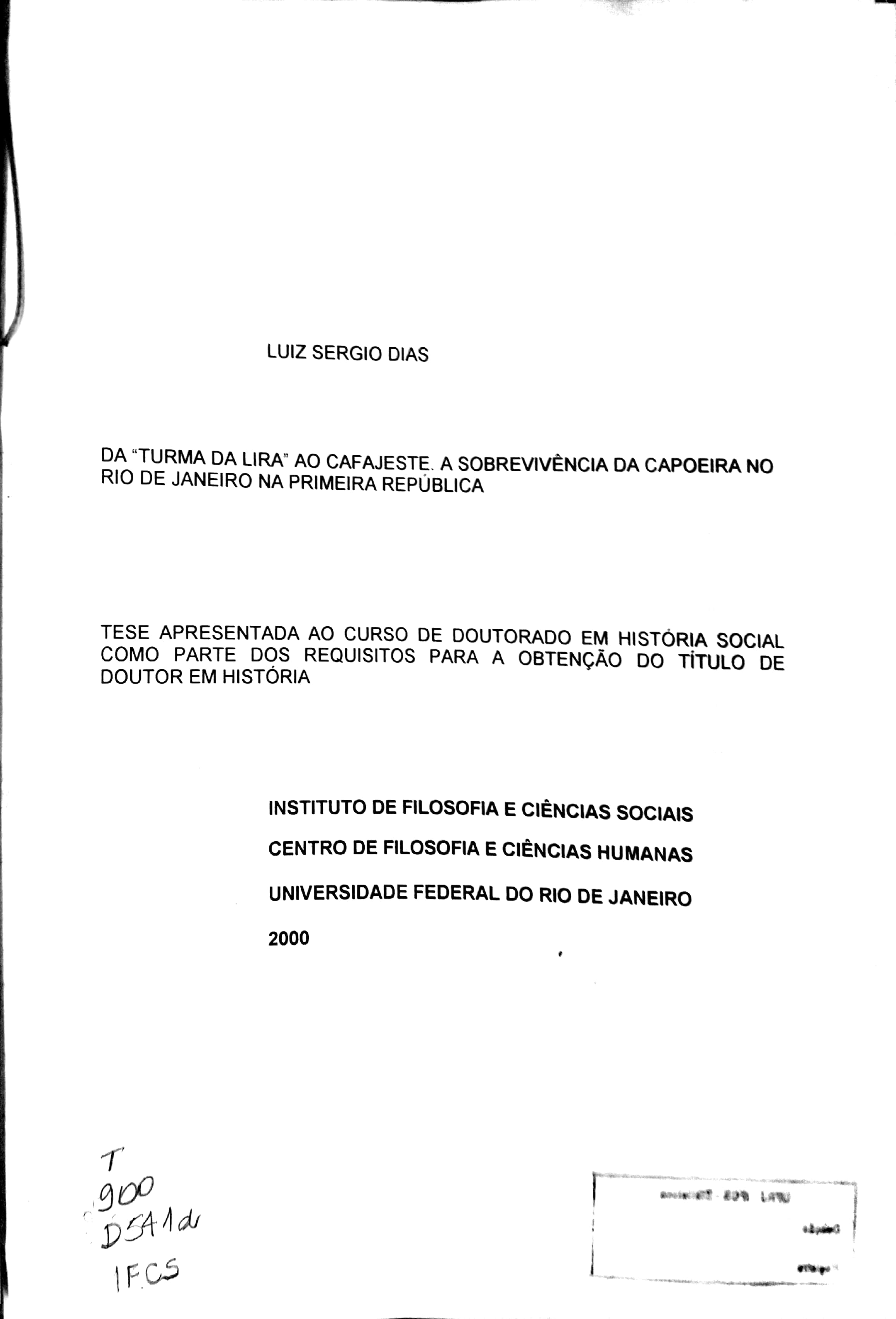 Da "Turma da Lira" ao Cafajeste. A Sobrevivência da Capoeira no Rio de Janeiro na Primeira República