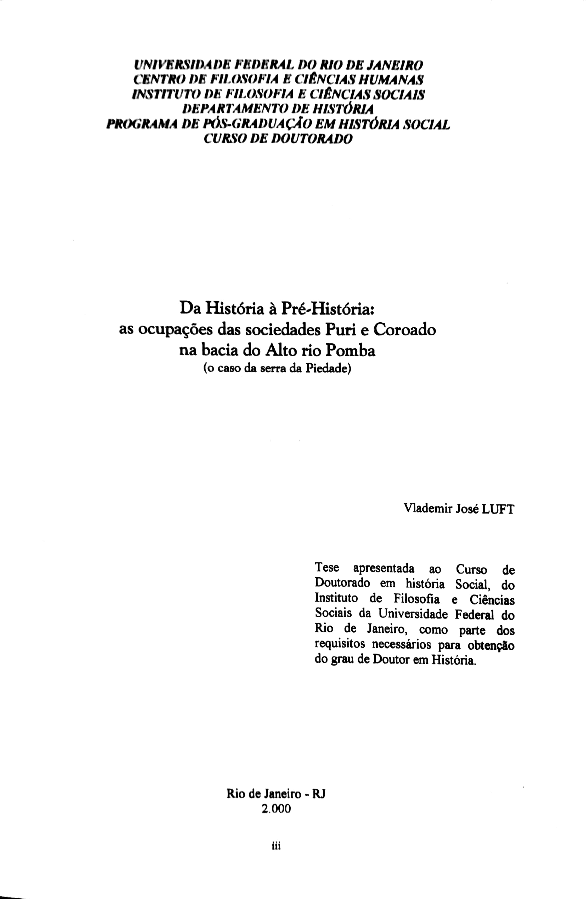 Da História à Pré-História: As Ocupações das Sociedades Puri e Coroado na Bacia do Alto Rio Pomba (O Caso da Serra da Piedade)
