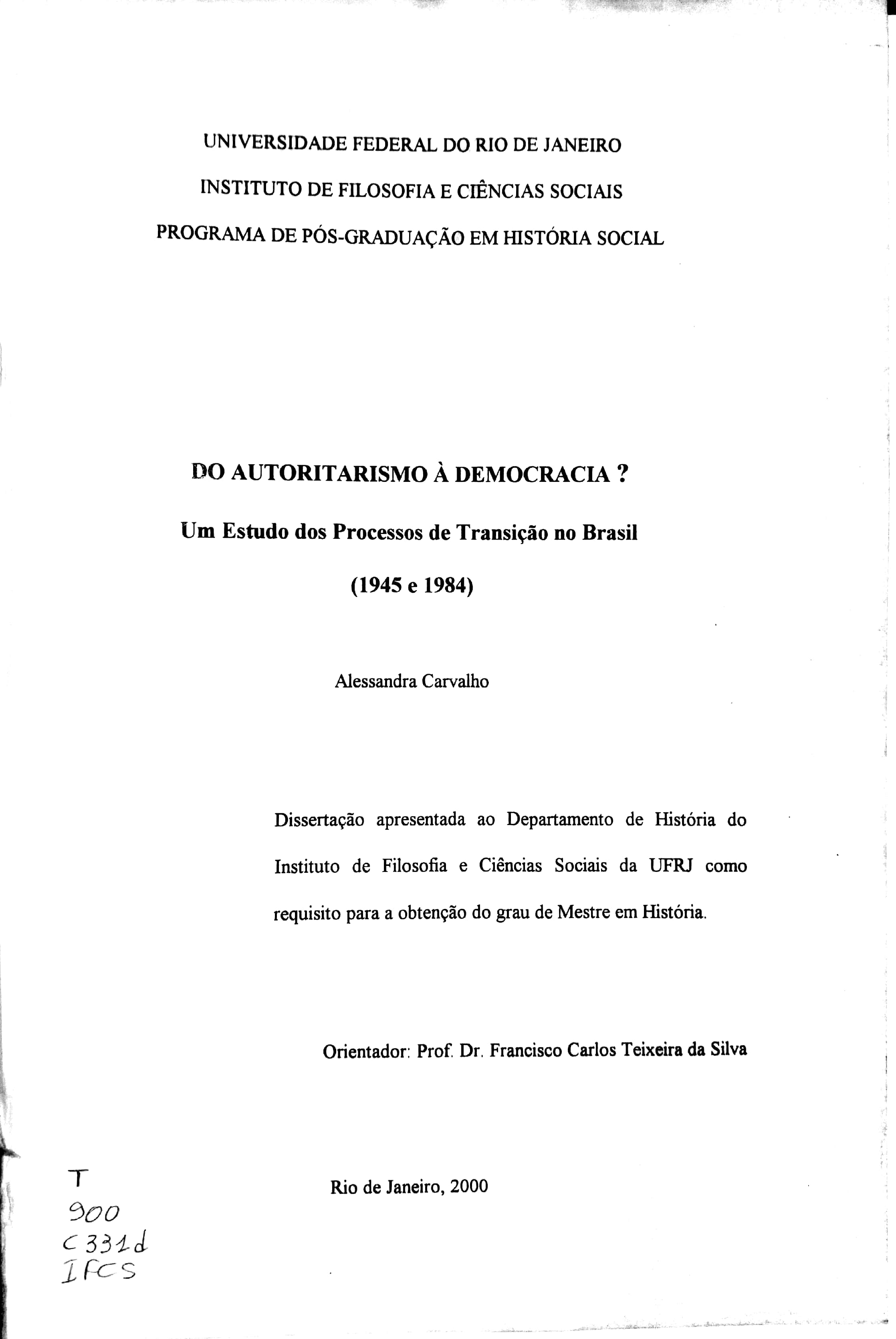 Do Autoritarismo à Democracia? Um Estudo dos Processos de Transição no Brasil (1945 e 1984)