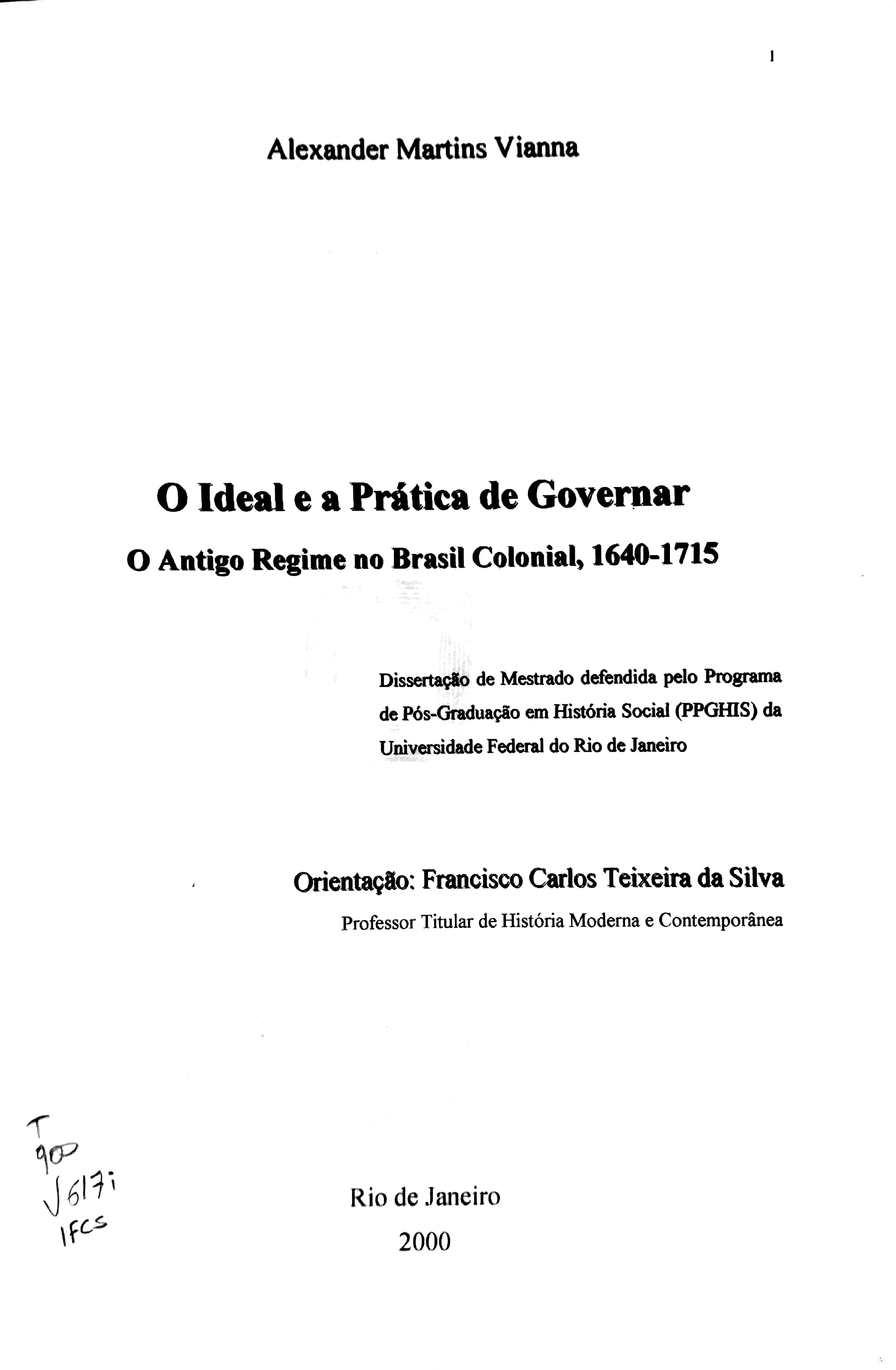 O Ideal e a Prática de Governar: O Antigo Regime no Brasil Colonial, 1640-1715