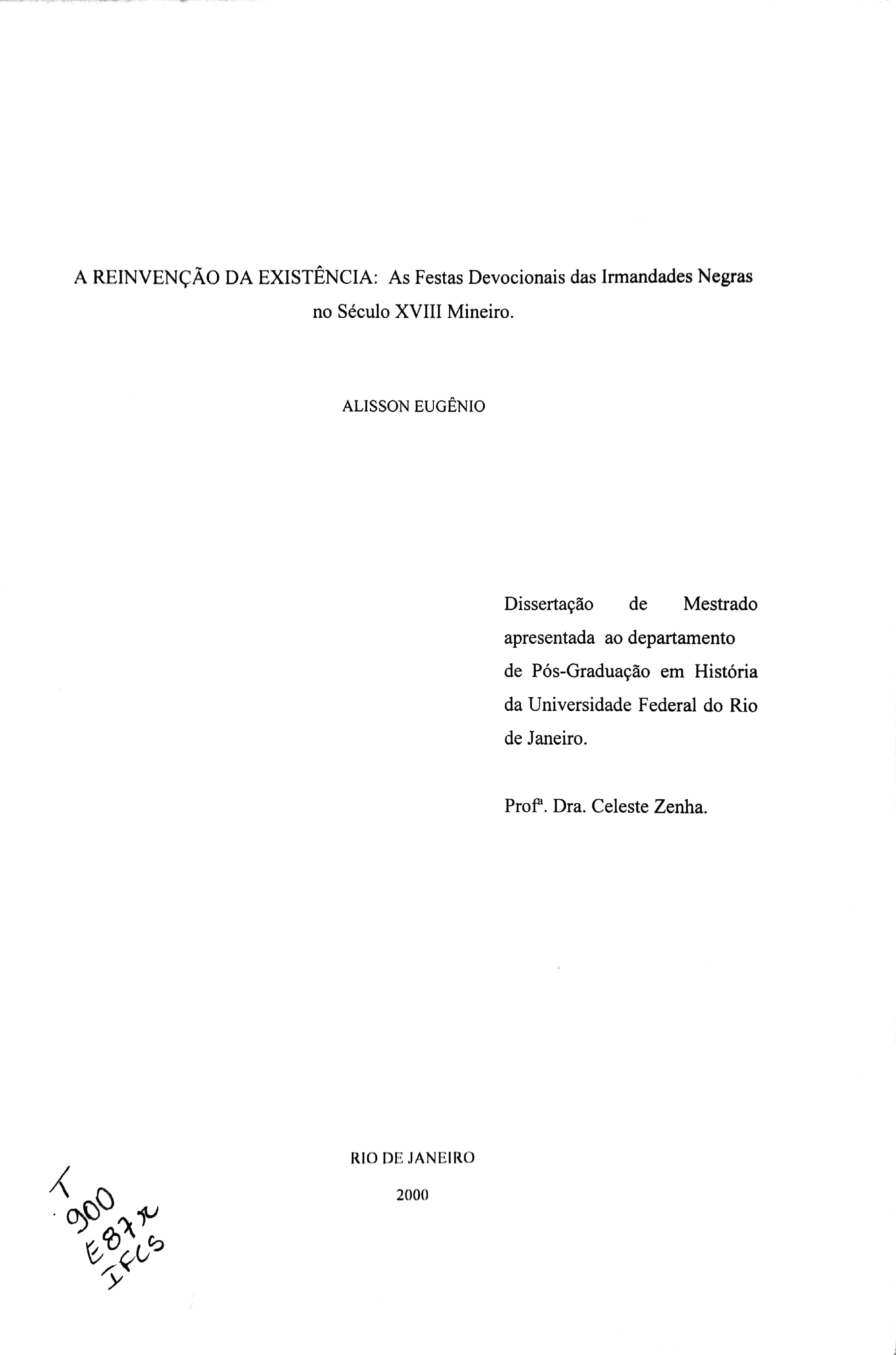 A Reinvenção da Existência: As Festas Devocionais das Irmandades Negras no Século XVIII Mineiro