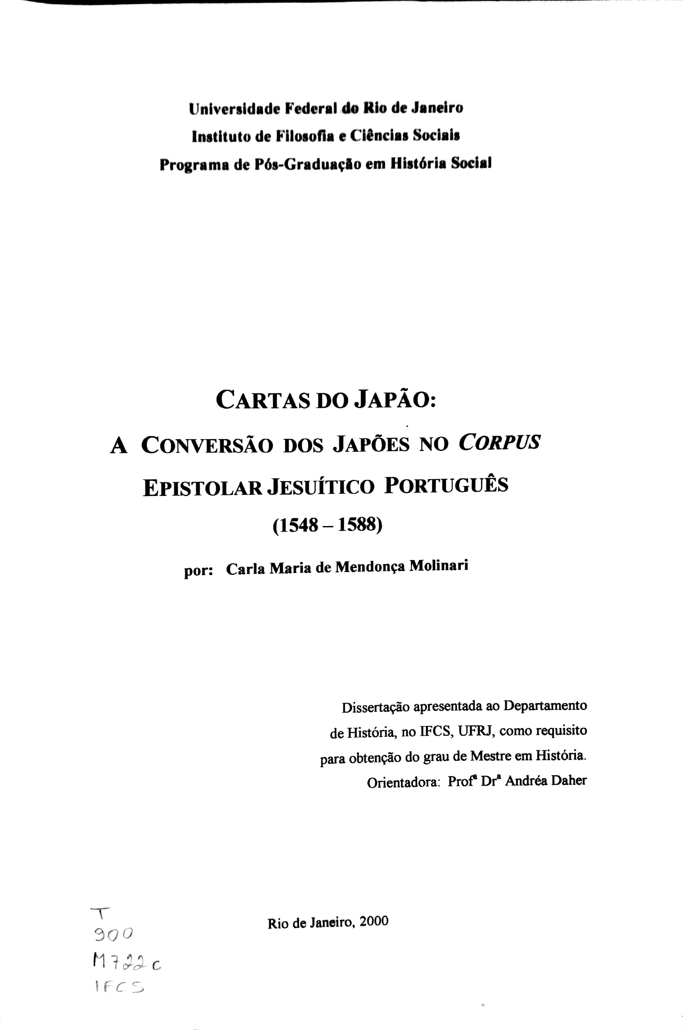 | Defesa: | 2000 |