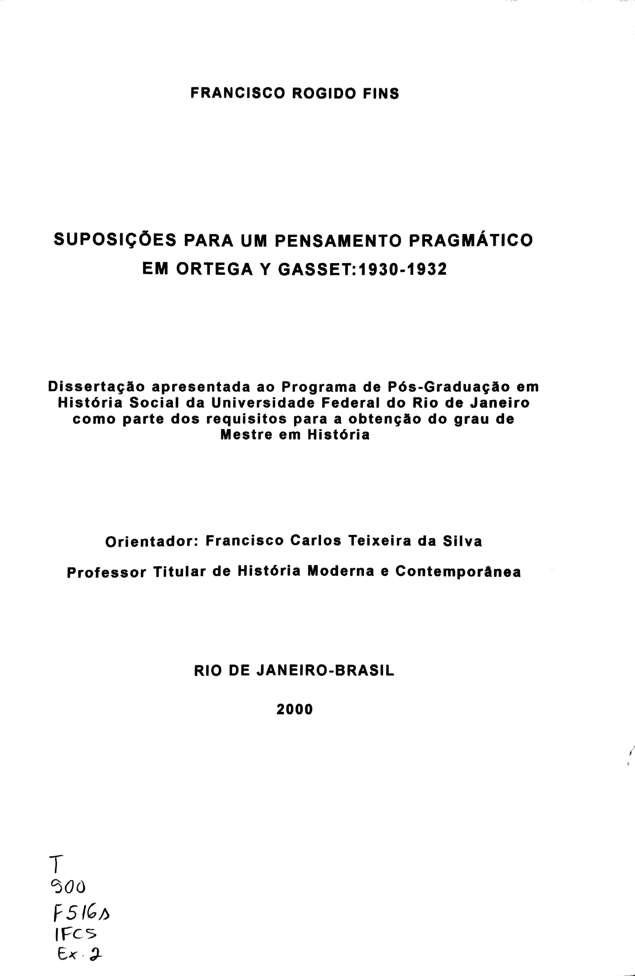 Suposições para um Pensamento Pragmático em Ortega y Gasset: 1930-1932