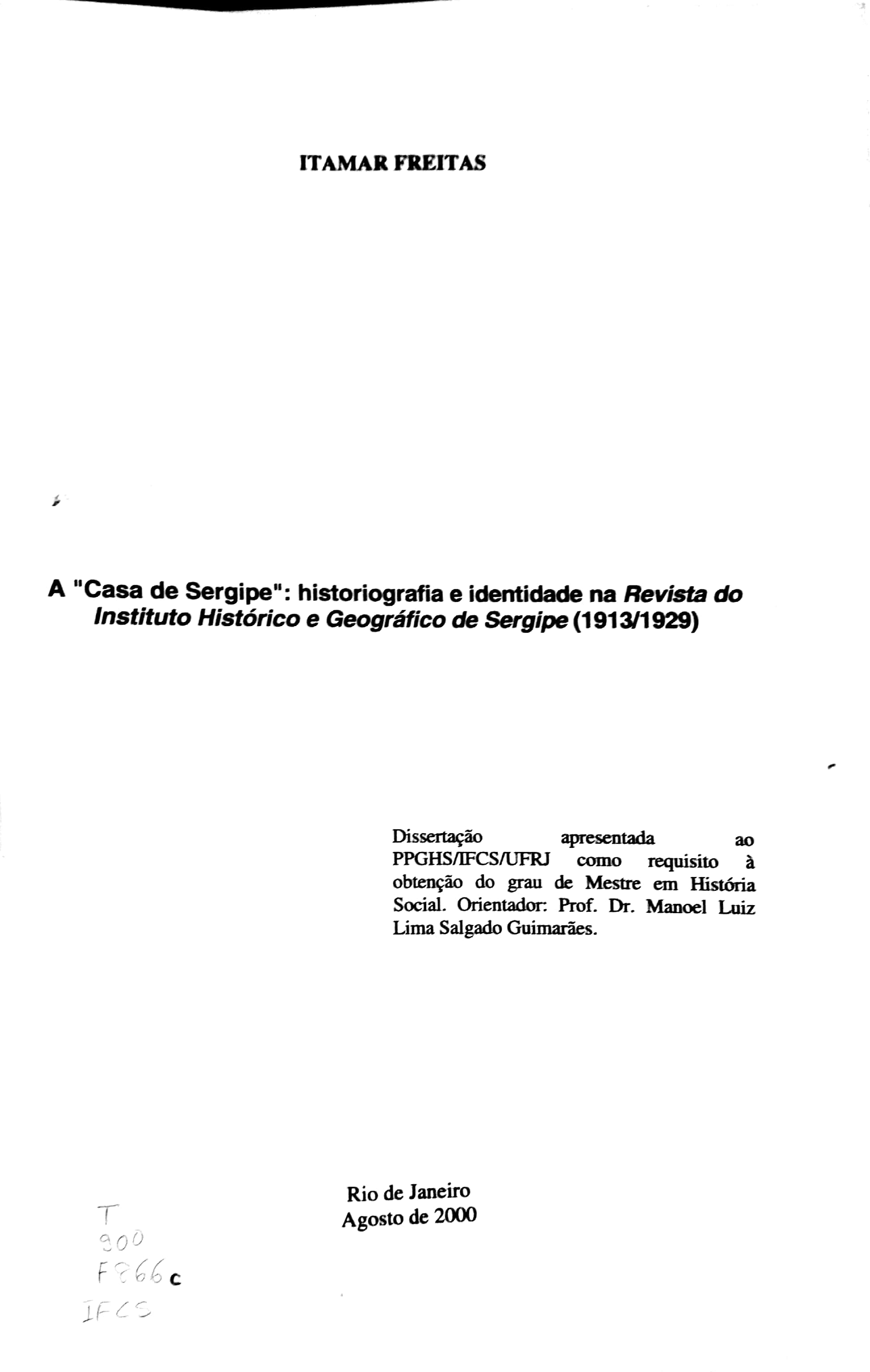 A "Casa de Sergipe": Historiografia e Identidade na Revista do Instituto Histórico e Geográfico de Sergipe (1913/1929)