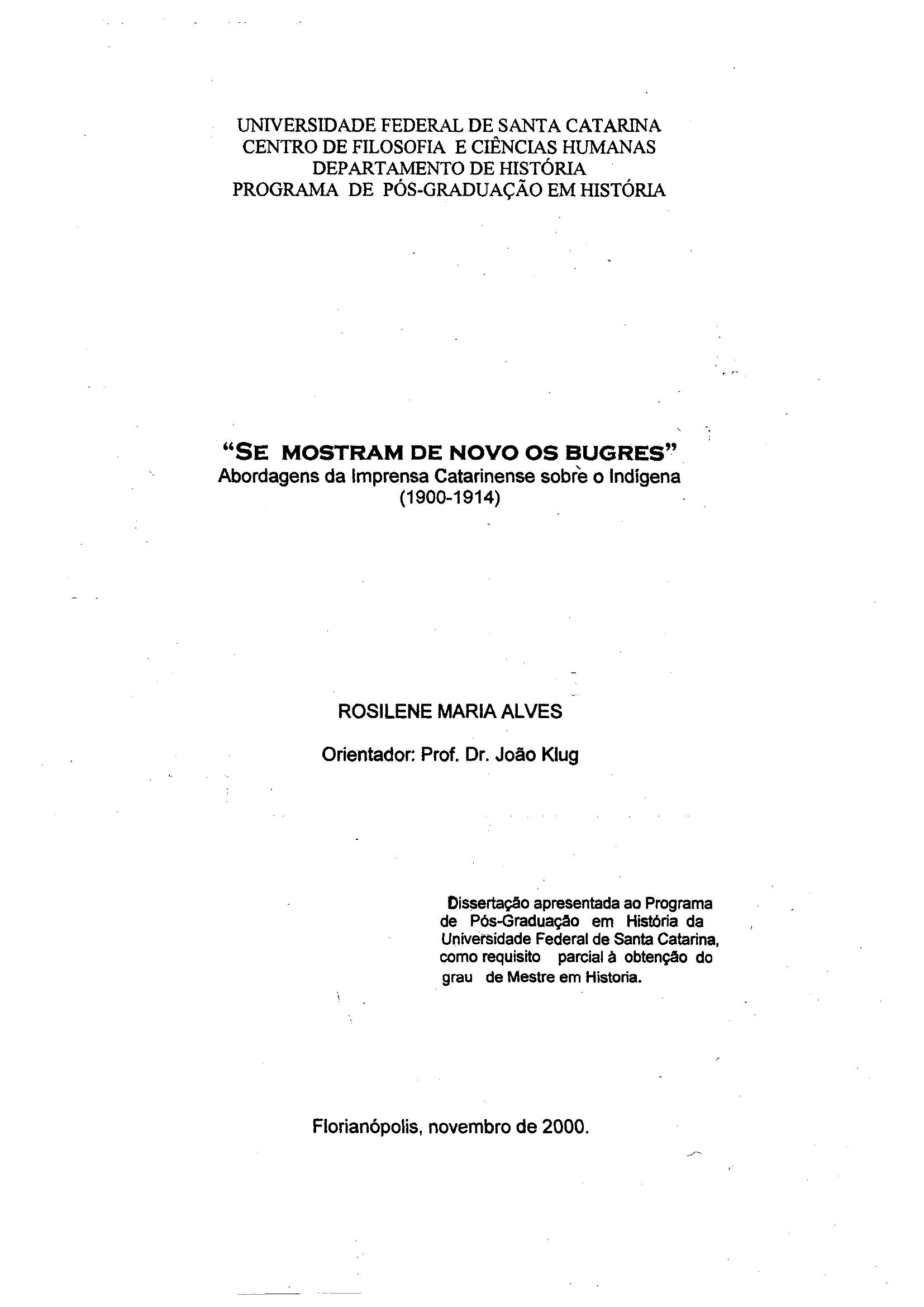 "Se Mostram de Novo os Bugres": Abordagens da Imprensa Catarinense sobre o Indígena (1900-1914)