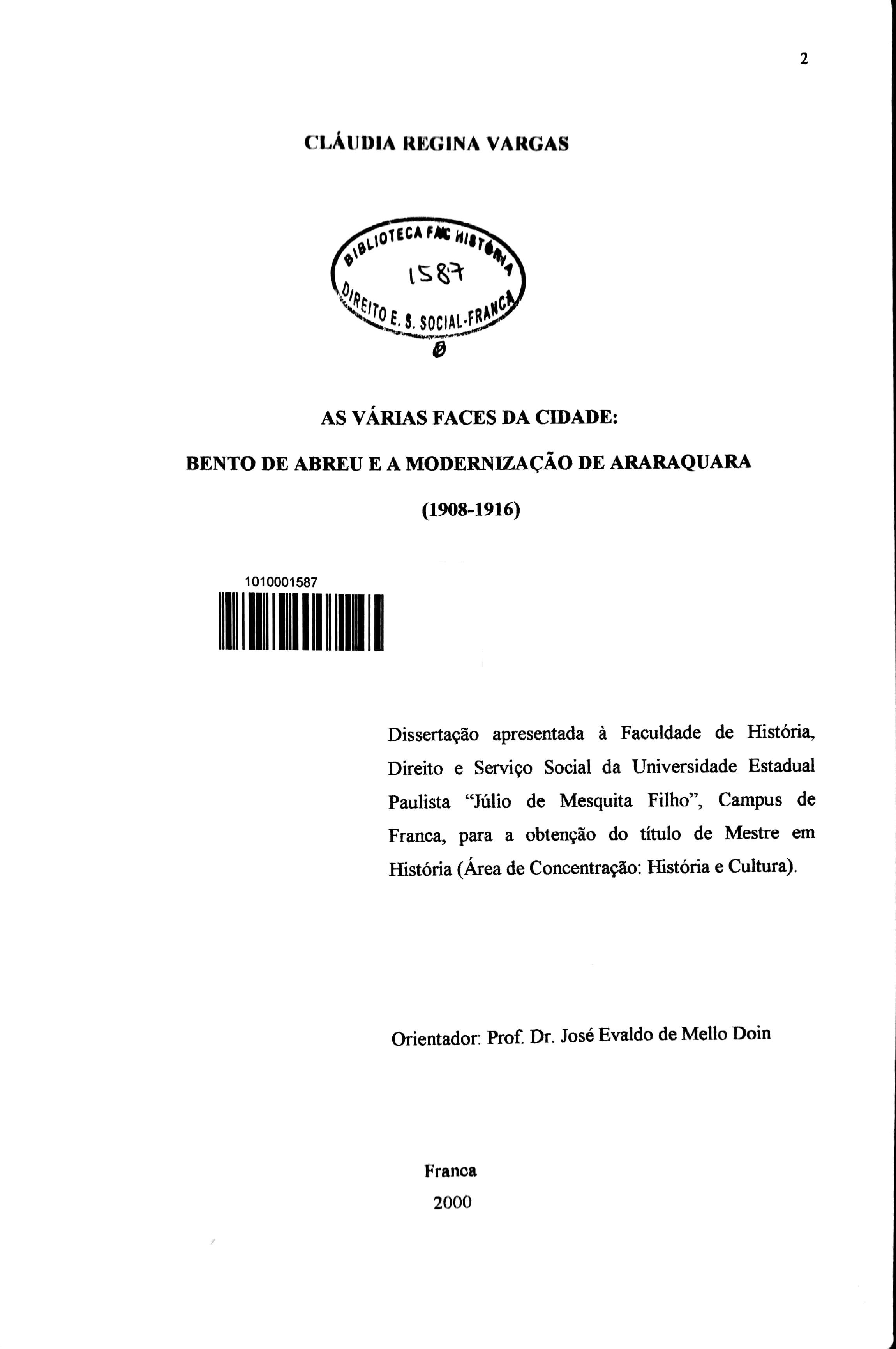 Cláudia Regina Vargas (Orientador: José Evaldo de Mello Doin)