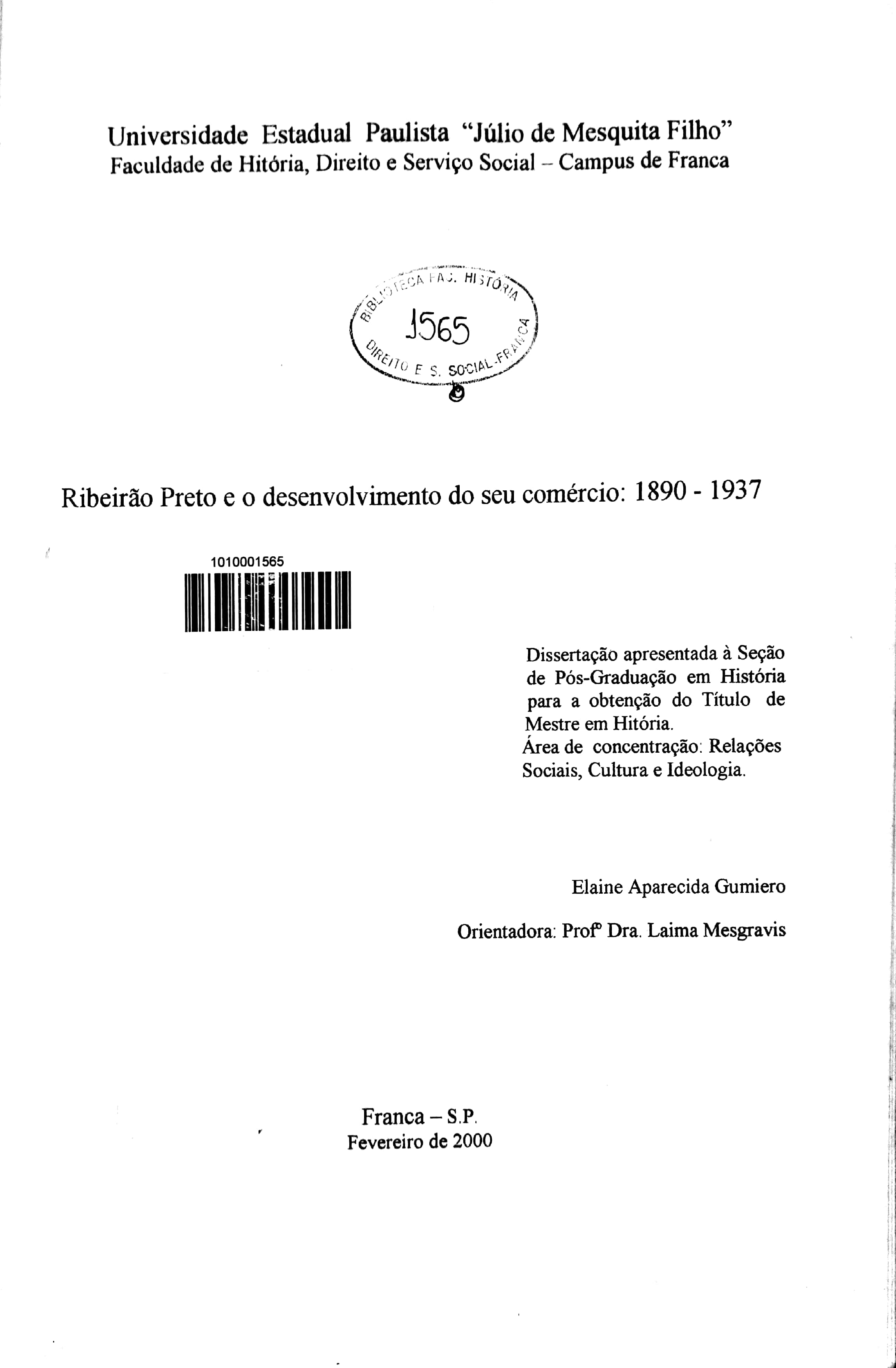 Ribeirão Preto e o Desenvolvimento do seu Comércio: 1890-1937