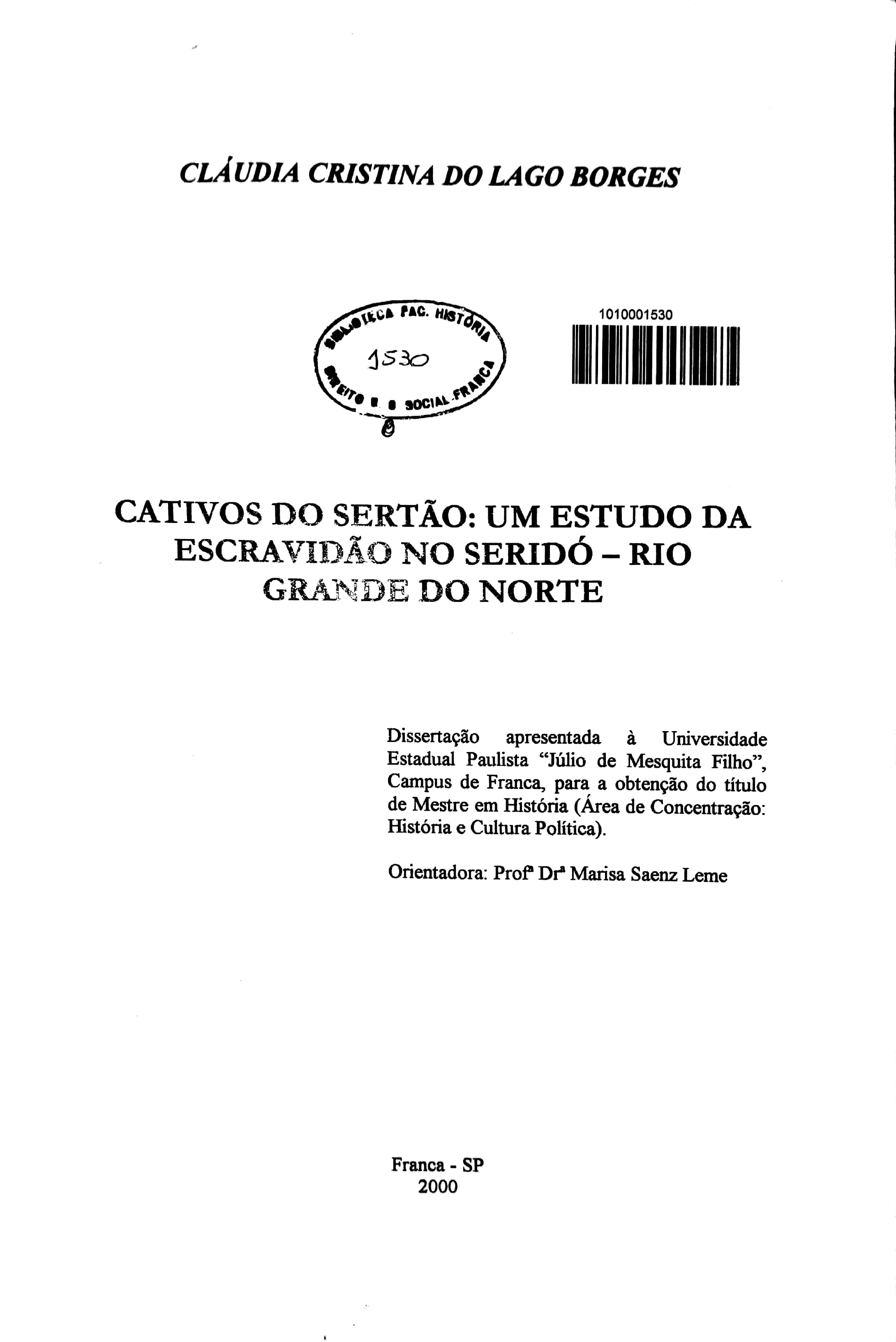 Cativos do Sertão: Um Estudo da Escravidão no Seridó - Rio Grande do Norte