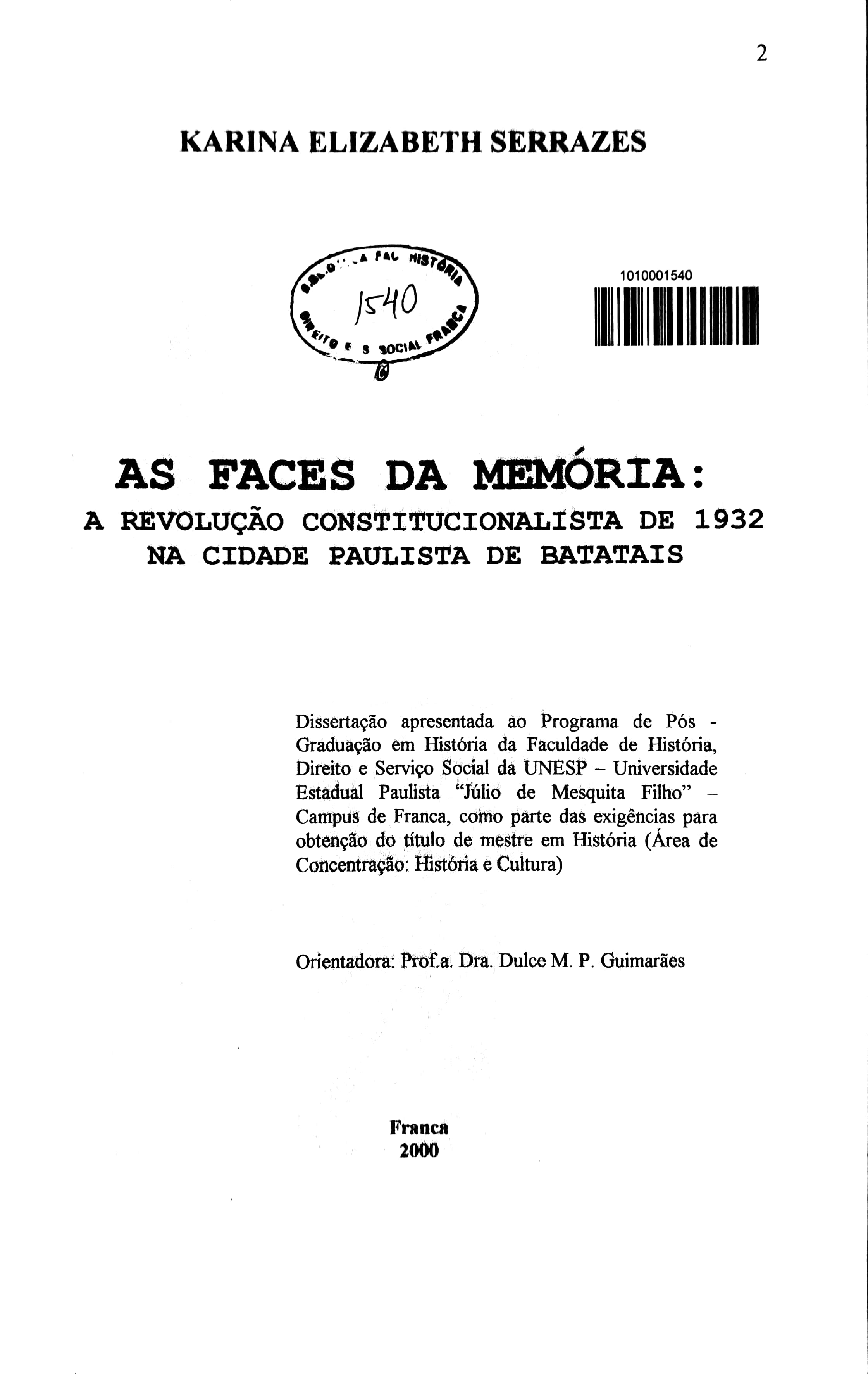 As Faces da Memória: A Revolução Constitucionalista de 1932 na Cidade Paulista de Batatais