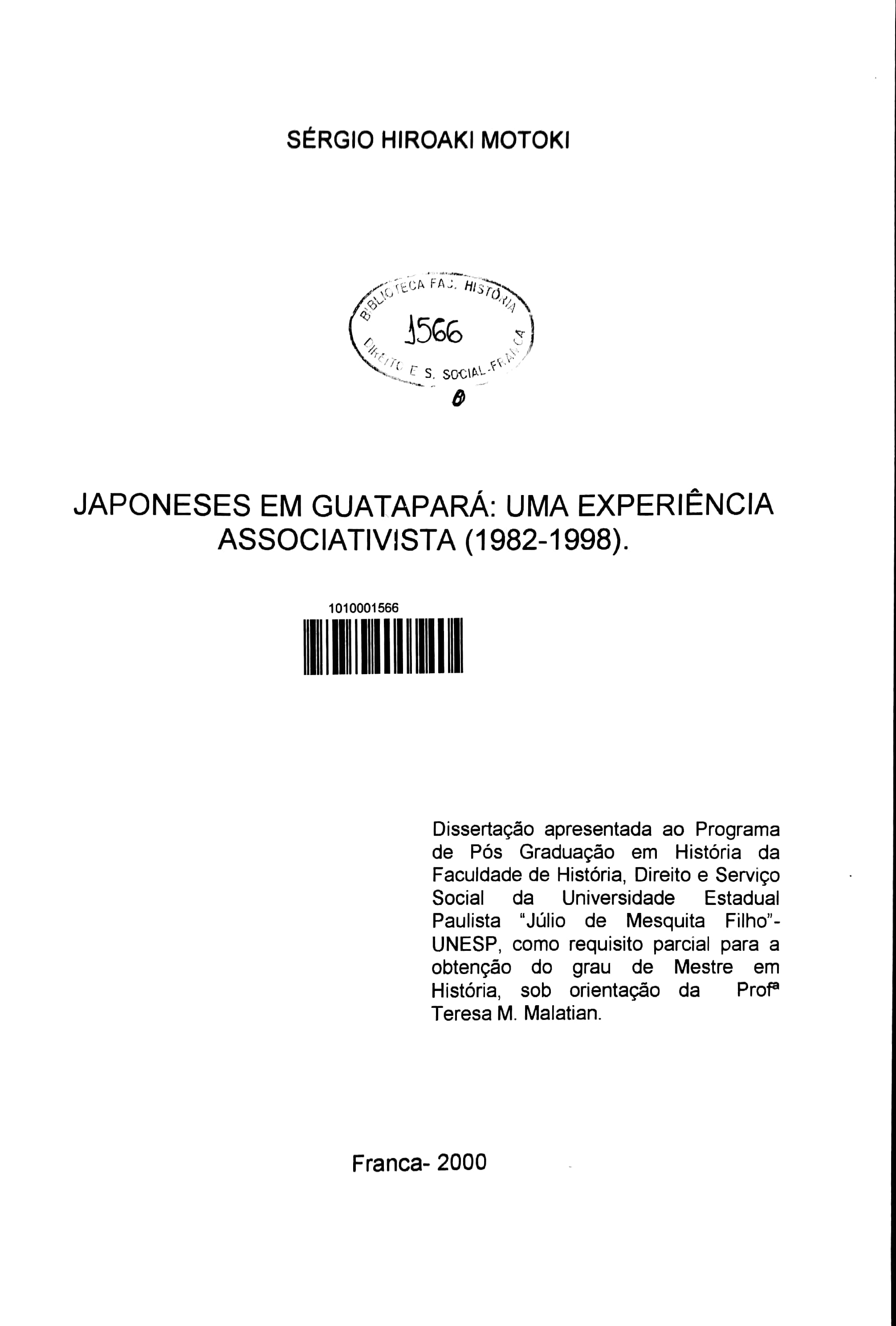 Os Japoneses em Guatapará: Uma Experiência Associativista (1982-1998)