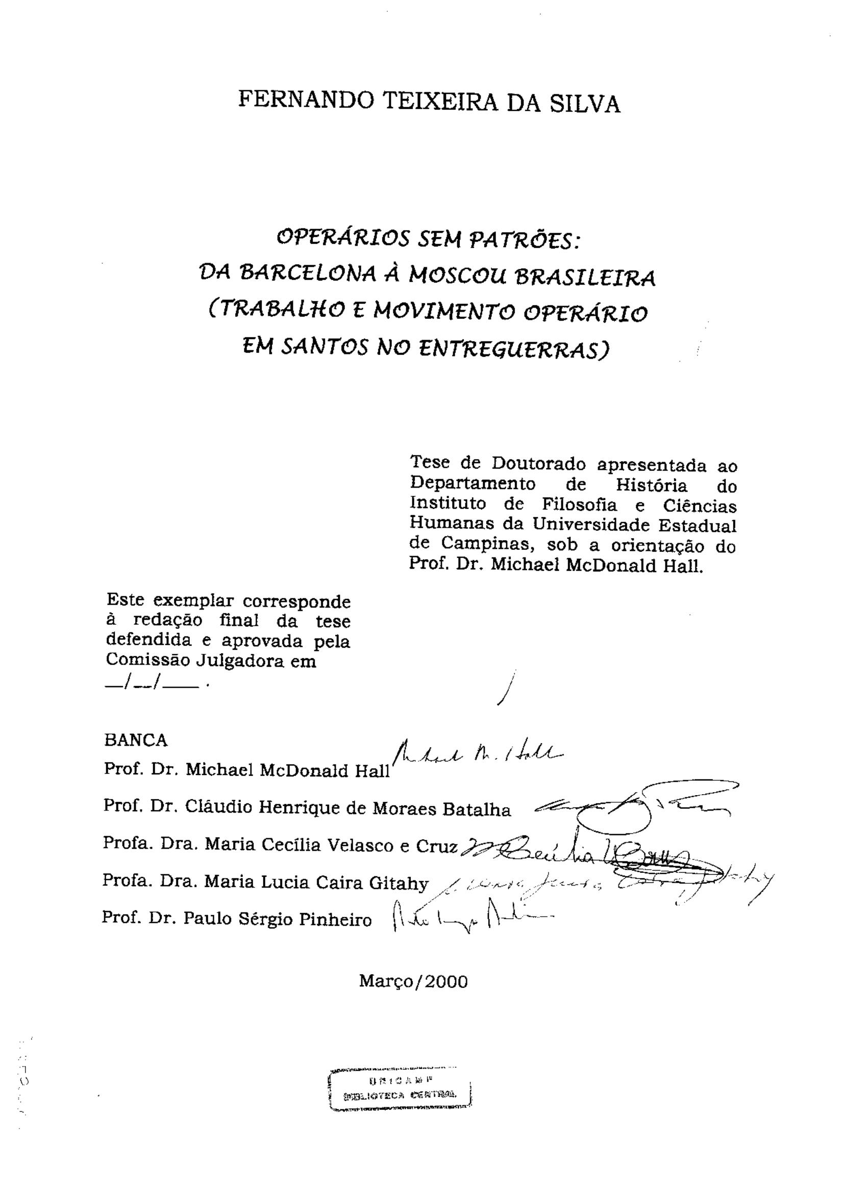 Fernando Teixeira da Silva (Orientador: Michael McDonald Hall)