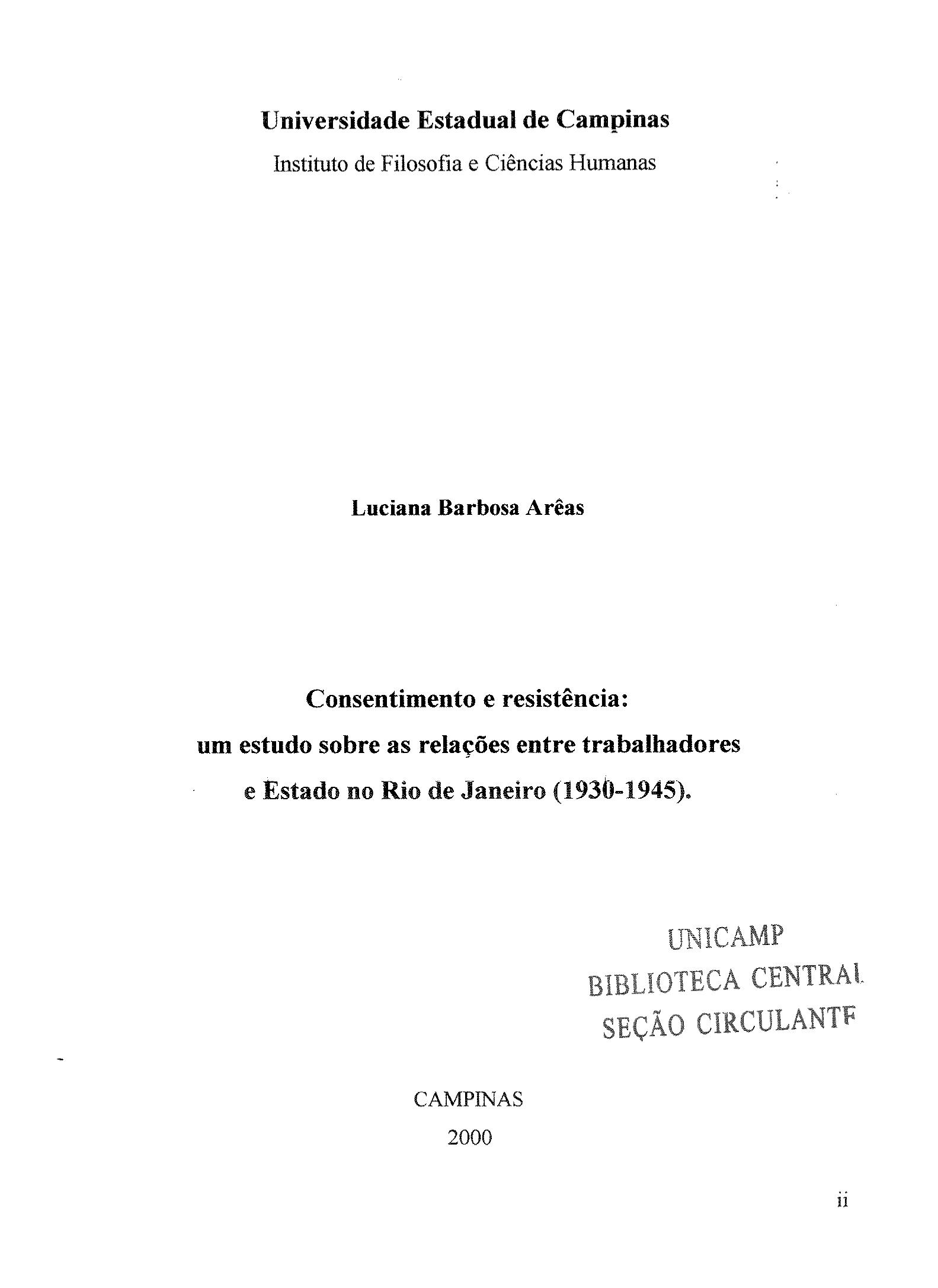 Consentimento e Resistência: Um Estudo sobre as Relações entre Trabalhadores e Estado no Rio de Janeiro (1930-1945)