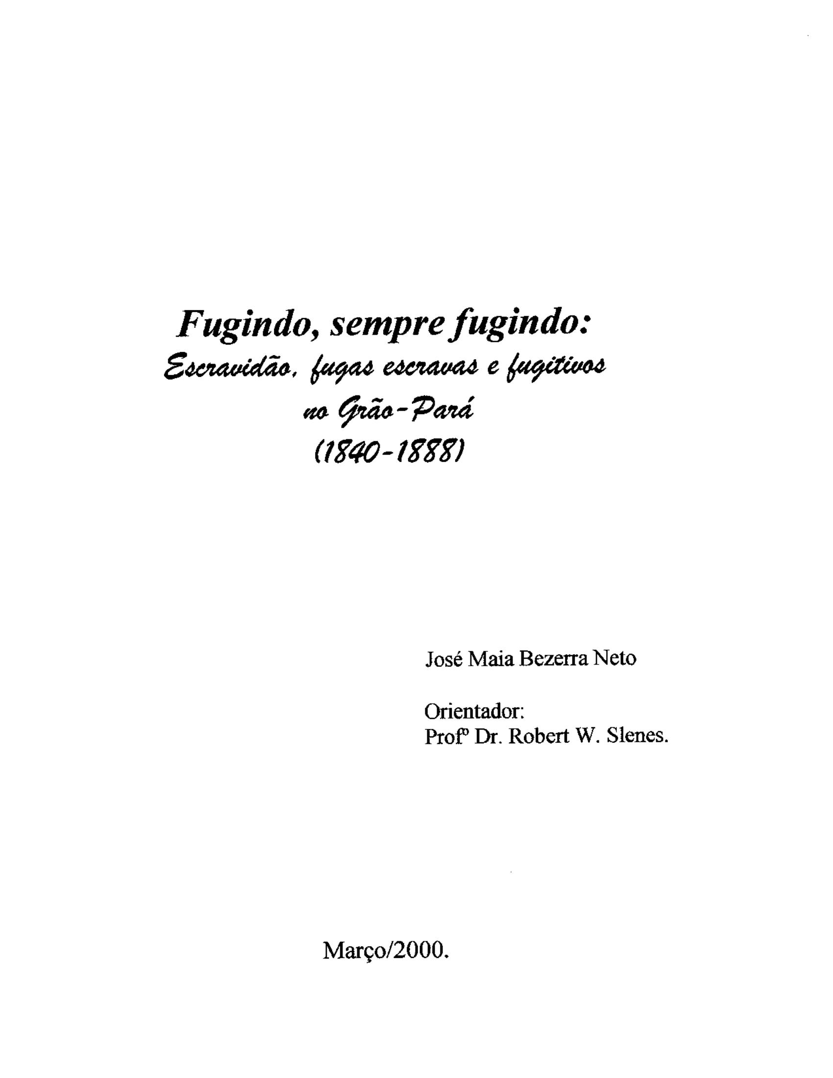 Fugindo, Sempre Fugindo: Escravidão, Fugas Escravas e Fugitivos no Grão-Pará (1840-1888)