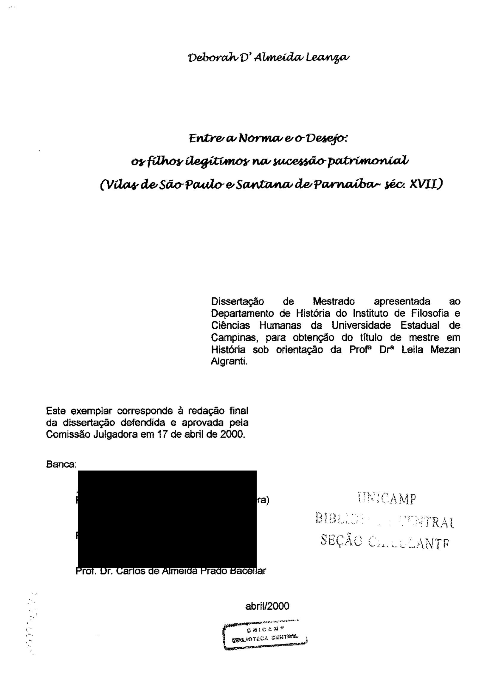 Deborah d'Almeida Leanza (Orientador: Leila Mezan Algranti)