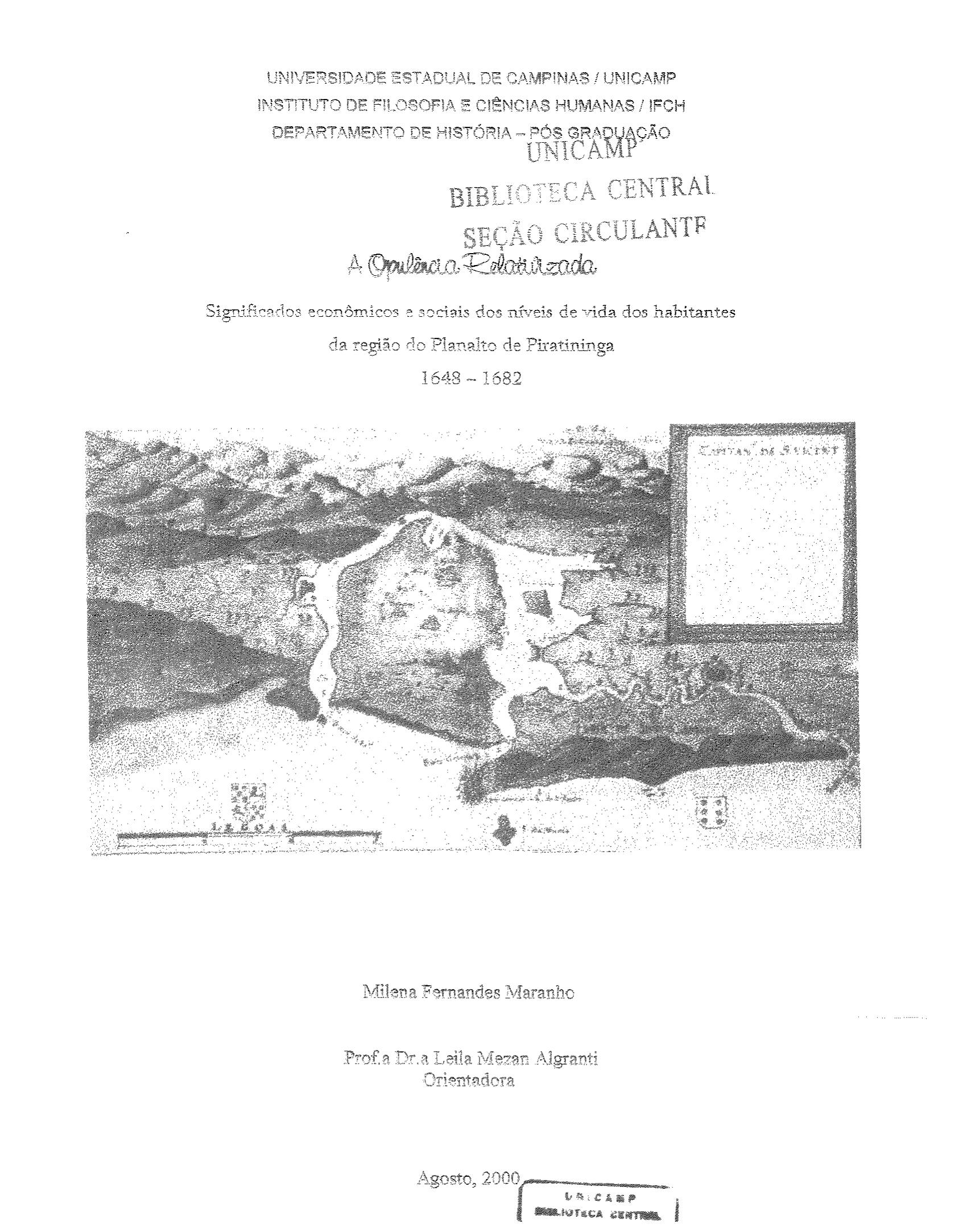 A Opulência Relativizada. Significados Econômicos e Sociais dos Níveis de Vida dos Habitantes da Região do Planalto de Piratininga 1648-1682