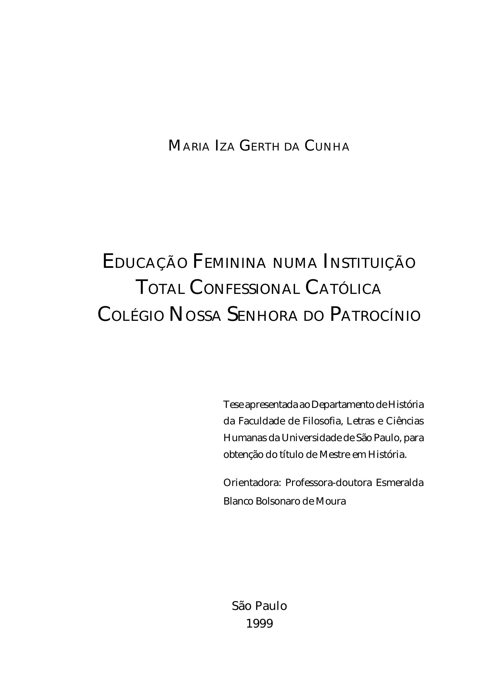 Educação Feminina numa Instituição Total Confessional Católica: Colégio Nossa Senhora do Patrocínio