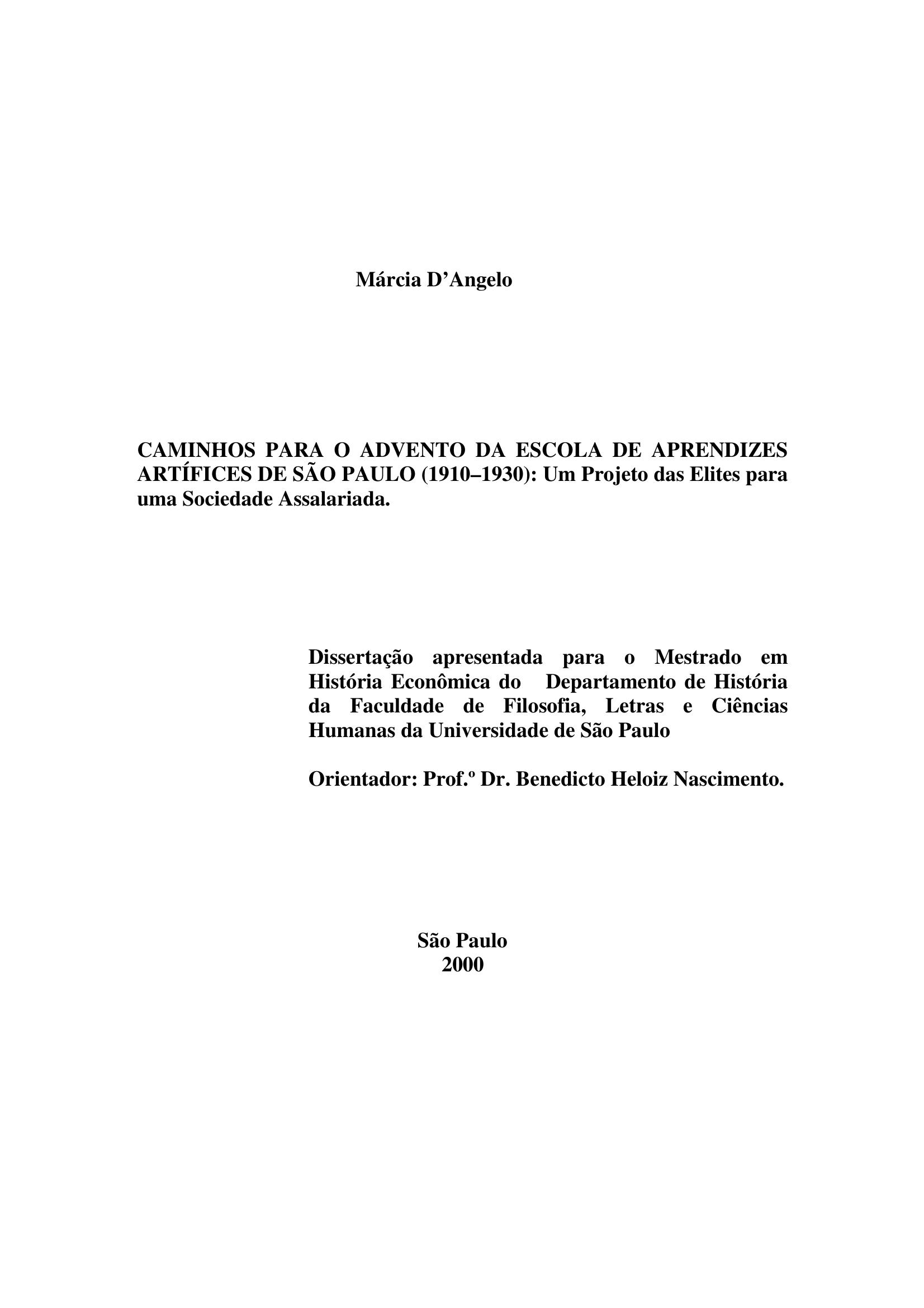 O objetivo desse trabalho foi caracterizar a Escola de Aprendizes Artífices de São Paulo, criada em 1909, como uma instituição que atendia às especificidades de São Paulo na época, como nacionalizar os trabalhadores, majoritariamente estrangeiros. Assim, cuidava-se de transmitir a língua e a cultura brasileira; a disciplina baseada na assiduidade, pontualidade, respeito à hierarquia e principalmente educar os futuros artífices, mestres e contra mestres, através de um ensino racional e científico, no sentido de descaracterizar o conhecimento empírico desses trabalhadores. A referida escola, apesar de ter sido criada por Nilo Peçanha, possivelmente, no sentido educar os desfavorecidos da fortuna, ilustrando a tese de uma elite brasileira, não representativa do polo dinâmico e que propunha, no Congresso Agrícola de 1878, no Rio de Janeiro, o aproveitamento da mão-de-obra livre pobre e ex-escrava, acabava por corresponder às expectativas da burguesia moderna paulista, que, no mesmo Congresso, fora vencedora ao propor o uso do imigrante no mercado de trabalho livre nacional. Diferentemente de suas congêneres nacionais. o seu alunado era formado por filhos de operários, profissionais urbanos e pelos próprios operários. Enquanto isso, e dando continuidade ao projeto da fração de elite moderna paulista, houve na década de 1920 a criação da Escola de Mecânica Prática do Liceu de Artes e Ofícios , a criação do Centro Ferroviário de Ensino e Seleção Profissional em 1934 e em 1942 a criação do SENAI, tendo como figura chave o engenheiro suíço Roberto Mange, inaugurando a seriação metódica, com a parcelização da produção e a requalificação por função, indicando um processo que iria ocorrer nas Escolas de Aprendizes Artífices de modo muito mais moroso. |