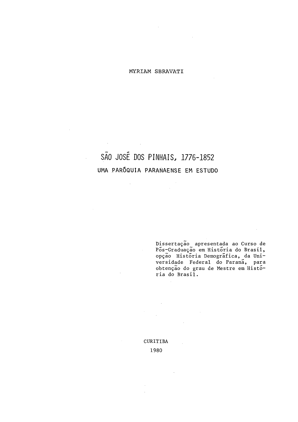 Este trabalho é um estudo do movimento populacional de São José dos Pinhais, entre 1776 e 1852, onde se faz o aproveitamento e interpretação quantitativos e qualitativos dos registros paroquiais. É examinada primeiramente a conjuntura histórica da Freguesia e Paróquia de São José, nos séculos XVIII e XIX. Nessa primeira parte, são estudadas: a localidade, origens, administração, economia.e população, para, dentro deste contexto, explorar exaustivamente os dados de batismos, casamentos e óbitos da referida paróquia. A abordagem enfoca temas como os movimentos anuais e mensais de batismos, casamentos e óbitos; as linhas de tendência por décadas;estuda-se ainda o problema da ilegitimidade, bem como o uso de nomes próprios dos nascidos durante os séculos acima citados; a nupcialidade e a mortalidade em diversos aspectos e o cálculo das taxas brutas de natalidade, nupcialidade e mortalidade. O trabalho é caracterizado pelo estudo comparativo com outras paróquias, objeto de estudos semelhantes, principalmente a Paróquia de Nossa Senhora da Luz da Vila de Curitiba . |