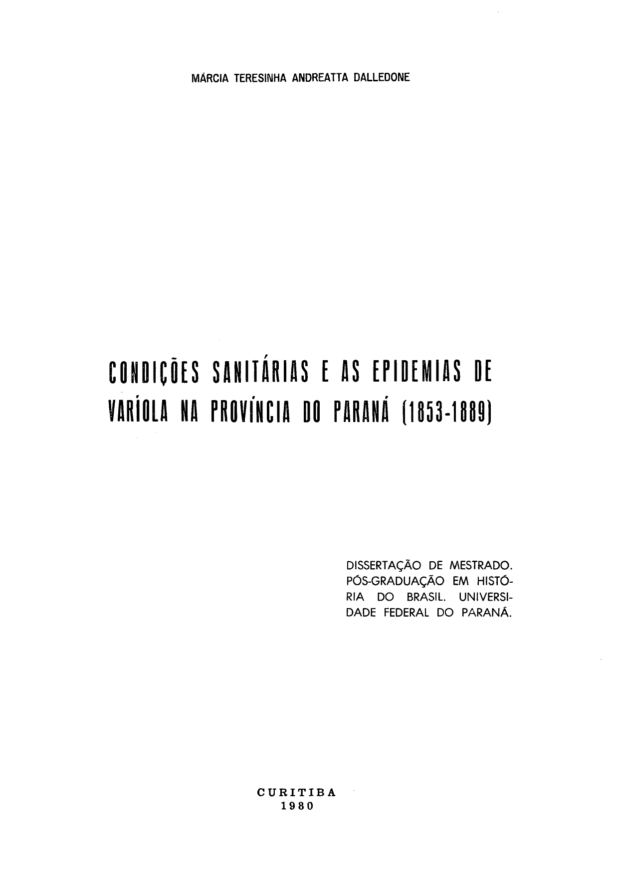 Condições Sanitárias e as Epidemias de Varíola na Província do Paraná (1853-1889)