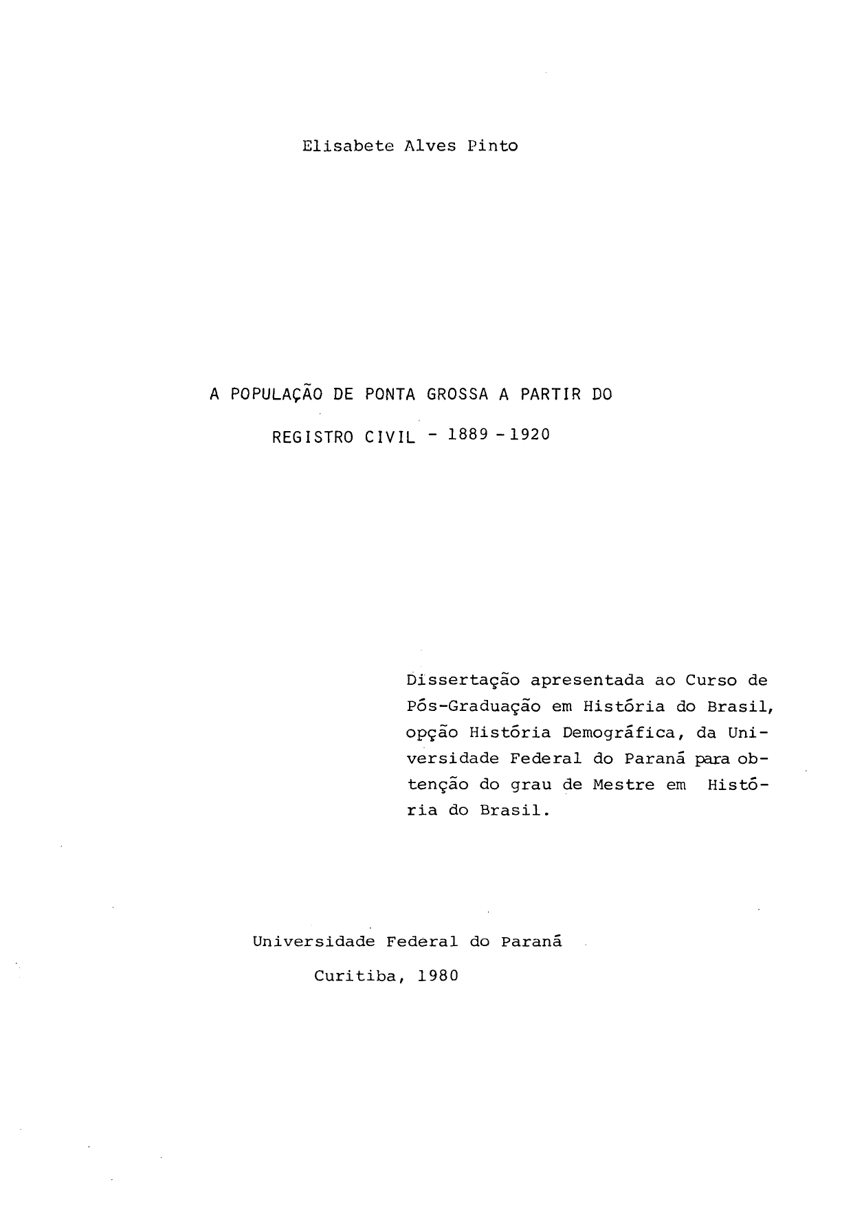 A População de Ponta Grossa a partir do Registro Civil - 1889-1920