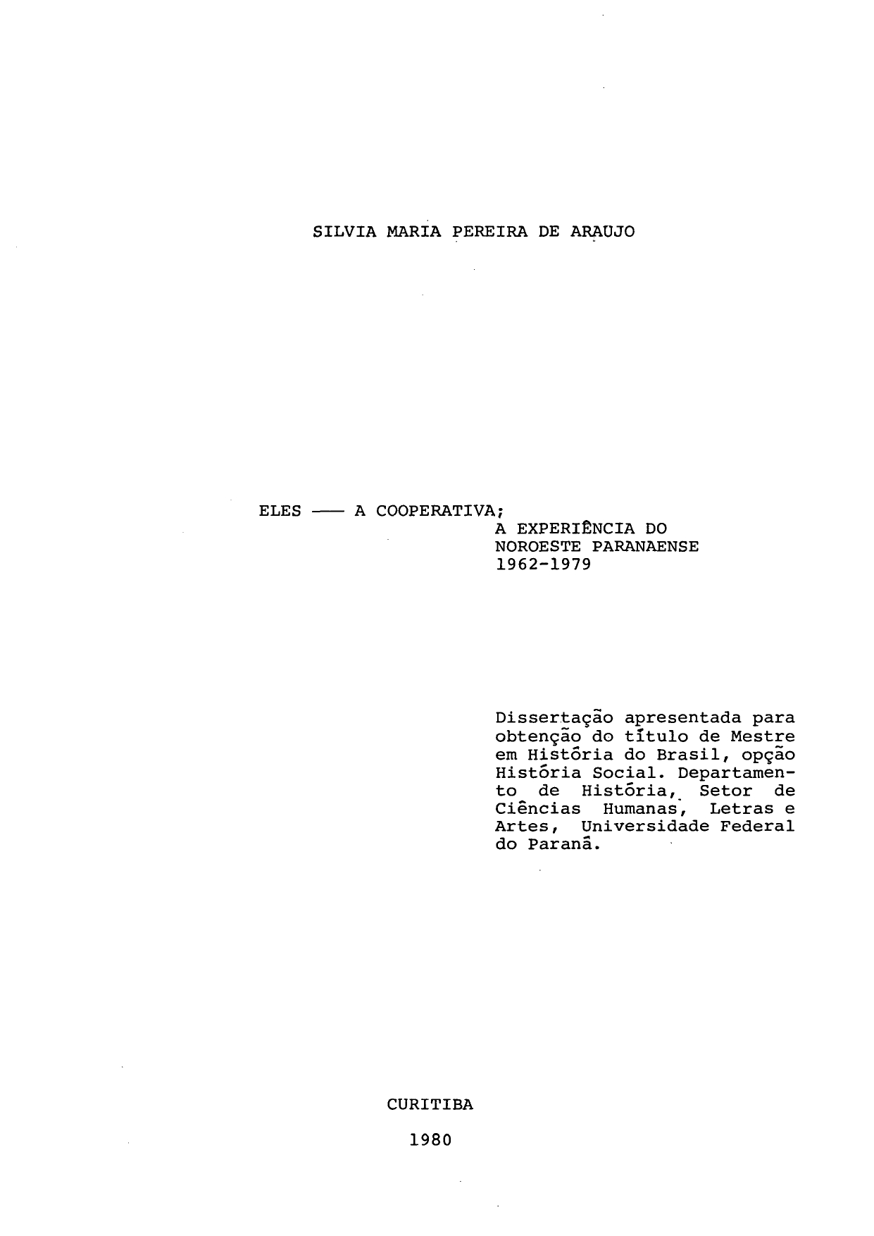 Eles - A Cooperativa; A Experiência do Noroeste Paranaense: 1962-1979