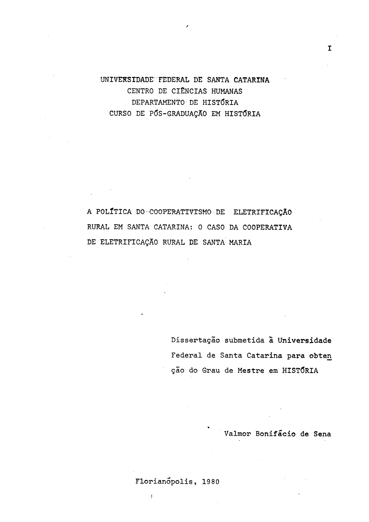 Esta dissertação analisa a política do cooperativismo de eletrificação rural em Santa Catarina, nos últimos trinta anos, estudando detalhadamente o caso da Cooperativa de Eletrificação Rural de Santa Maria de Responsabilidade Limitada, localizada no município de Benedito Novo. O estudo aborda em retrospectiva, a origem do cooperativismo na Europa até alcançar o Brasil nos fins do Império, cujo início se assemelha ao europeu em suas necessidades e valores sociais. Nesta fase inicial, e até o inicio da década de 1930, é tratado sem o devido cuidado de empresa comunitária. Sua ação é entendida como uma empresa capitalista dentro do sistema liberal. A partir do Estado Novo toma, por parte da nova legislação, uma nova roupagem, quando passa a ser orientado como uma empresa sui generis. Após estas considerações gerais, enfocamos com maior abrangência a política do cooperativismo de eletrificação rural em Santa Catarina, tendo por base a Cooperativa de Eletrificação Rural de Santa Maria. O estudo desta política no Estado, abrange o período de 1951 a 1979. Sob este prisma o trabalho aborda, sobretudo, a política adotada pelo Governo do Estado para prover o meio rural deste elemento de modernização, fazendo um estudo pormenorizado dos dois organismos, que em períodos diferentes, tiveram sob si a responsabilidade de conduzir esta política. |