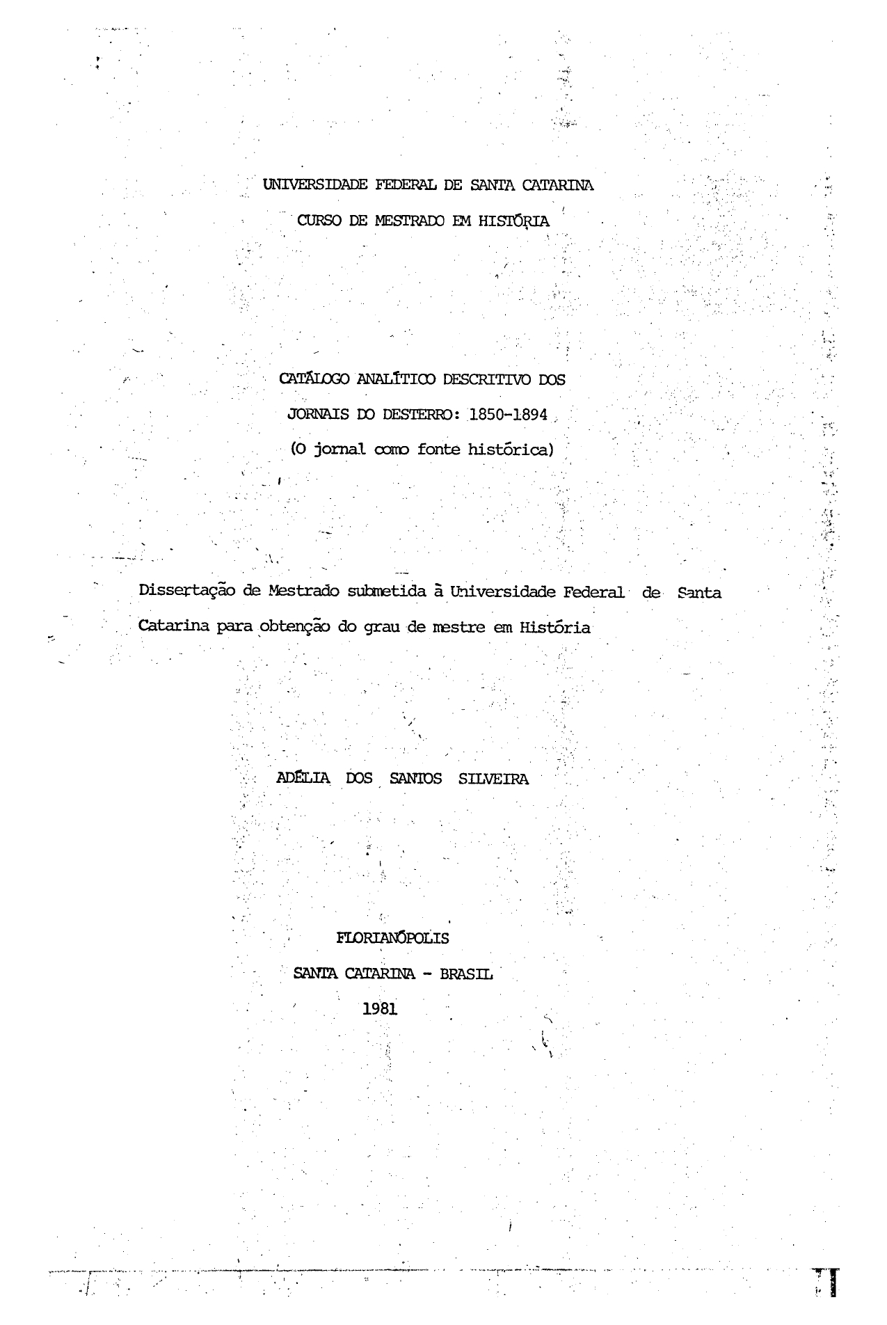 A pesquisa histórica precisa hoje, sem dúvida, de modo fundamental, dos jornais como fonte para seu desenvolvimento. A presente Dissertação compreende dois níveis: um levantamento global da imprensa catarinense (1850 - 1980) e a elaboração de uma soma de fichas catalográficas dos jornais do Desterro (1850 - 1894). O levantamento global dos jornais catarinenses da Biblioteca Pública do Estado de Santa Catarina, com seus elementos de identificação: Título, subtítulo e variações de idioma; ordem alfabética e cronológica, sequência anual de publicação, localização geográfica e fichas catalográficas sintéticas, do período de 1850 a 1980, pretende-se elaborar um instrumento apto para expôr dados exatos e precisos das fontes jornalísticas, a fim de dar melhor andamento a novas pesquisas históricas. A confecção de fichas catalográficas analíticas de todos os jornais do Desterro (1850 - 1894), procura possibilitar melhores condições de pesquisa a partir de diversos itens, como: Título, subtítulo, epígrafe, endereço, período de publicação, periodicidade, caracteristicas tipográficas, órgão promotor, fundador, proprietário, editor, impressor, diretor, administrador, gerente, redator responsável, redatores, correspondentes, colaboradores, colaboradores eventuais e autores transcritos (listagem alfabética), tipografia , distribuição, subscrição, preço de exemplar, preço de publicidade, localização atual da coleção no acervo hemerográfico da Biblioteca Pública do Estado de Santa Catarina, e observações gerais. Inserem-se no trabalho dois mapas do Estado de Santa Catarina e cinco quadros demonstrativos de diversos aspectos importantes. No Apêndice incluem-se cópias de documentos de tipo jurídico, administrativo e gráfico, com a finalidade de facilitar aos leitores e aos pesquisadores a consulta de peças de valor ilustrativo. |