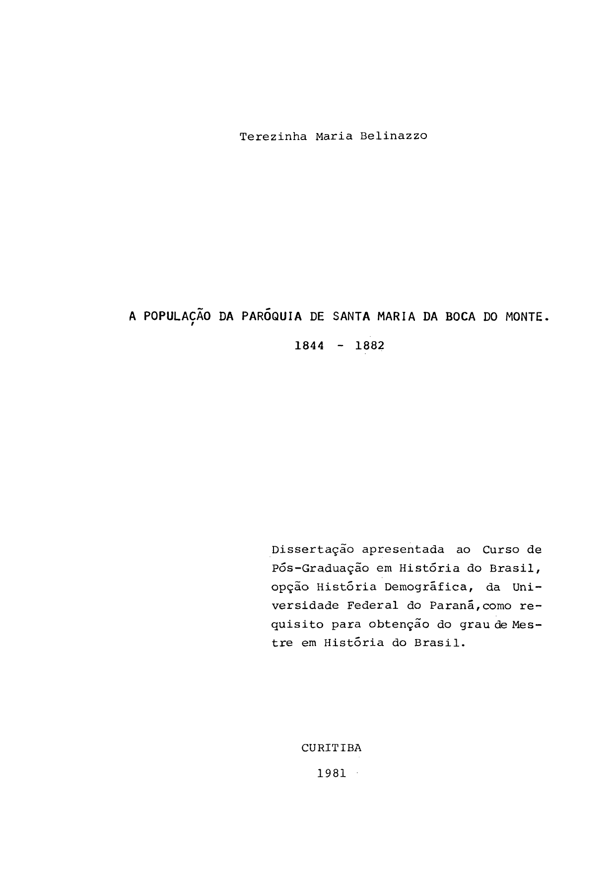 A População de Santa Maria da Boca do Monte. 1844-1882