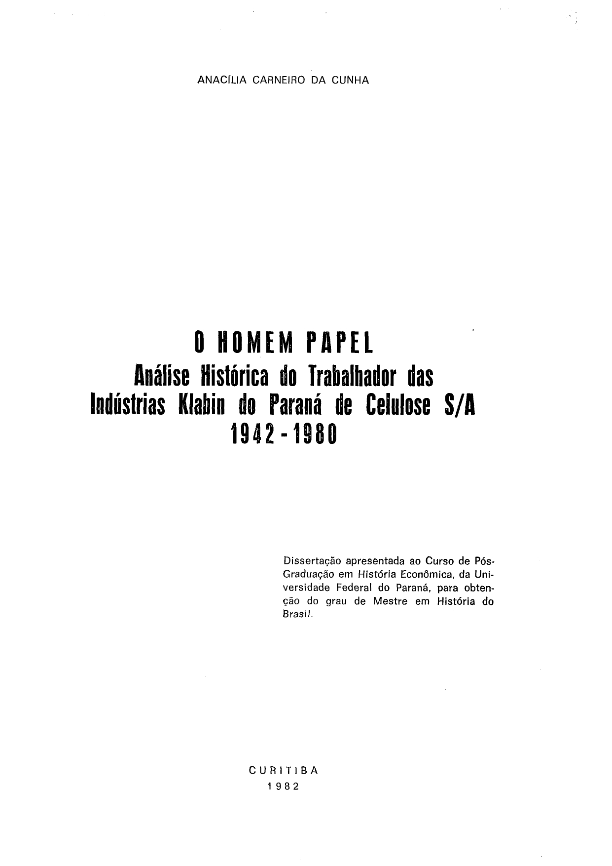 O Homem Papel: Análise Histórica do Trabalhador nas Indústrias Klabin do Paraná de Celulose S/A. 1942-1980