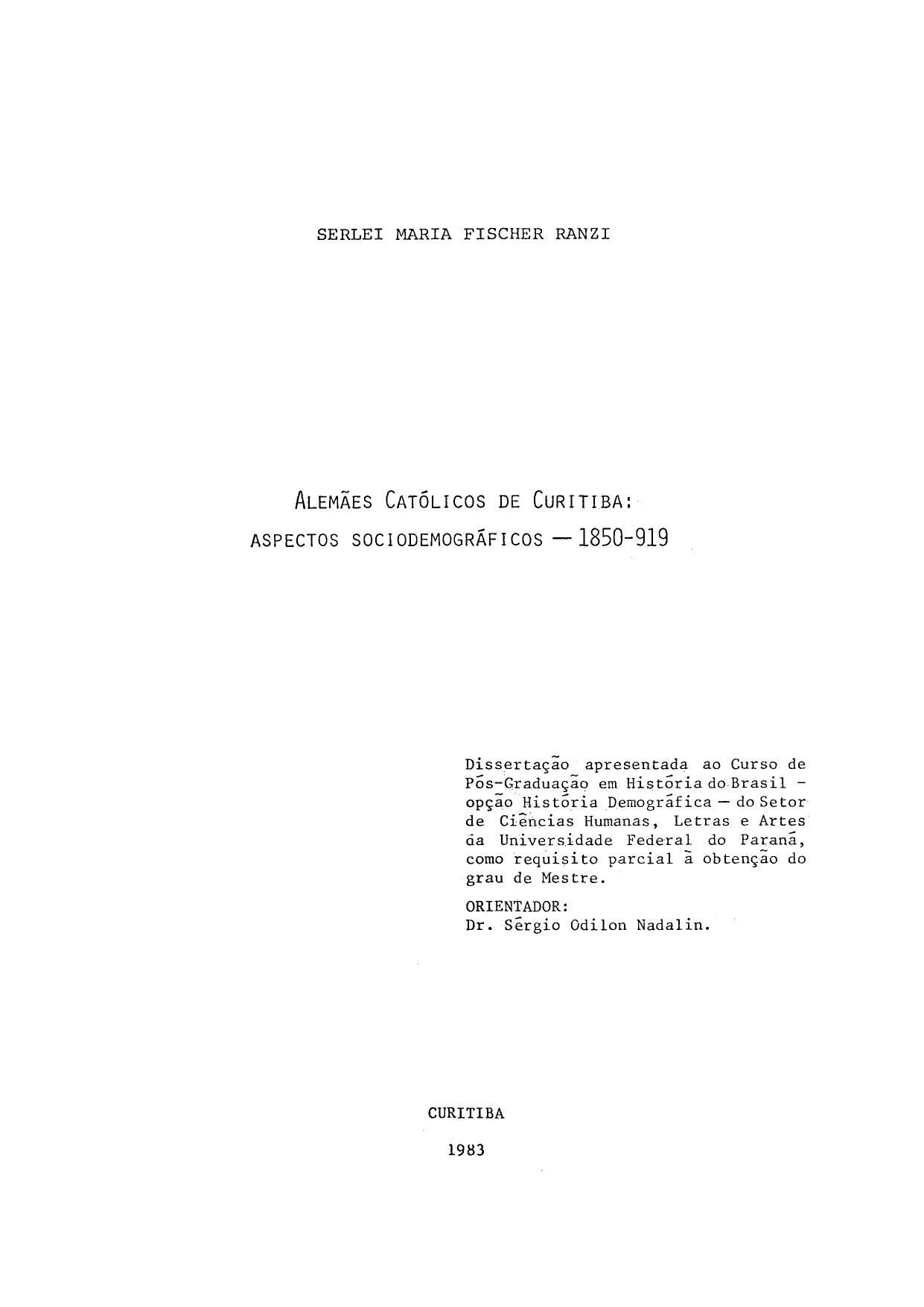Alemães Católicos em Curitiba: Aspectos Sócio-Demográficos - 1850-1919