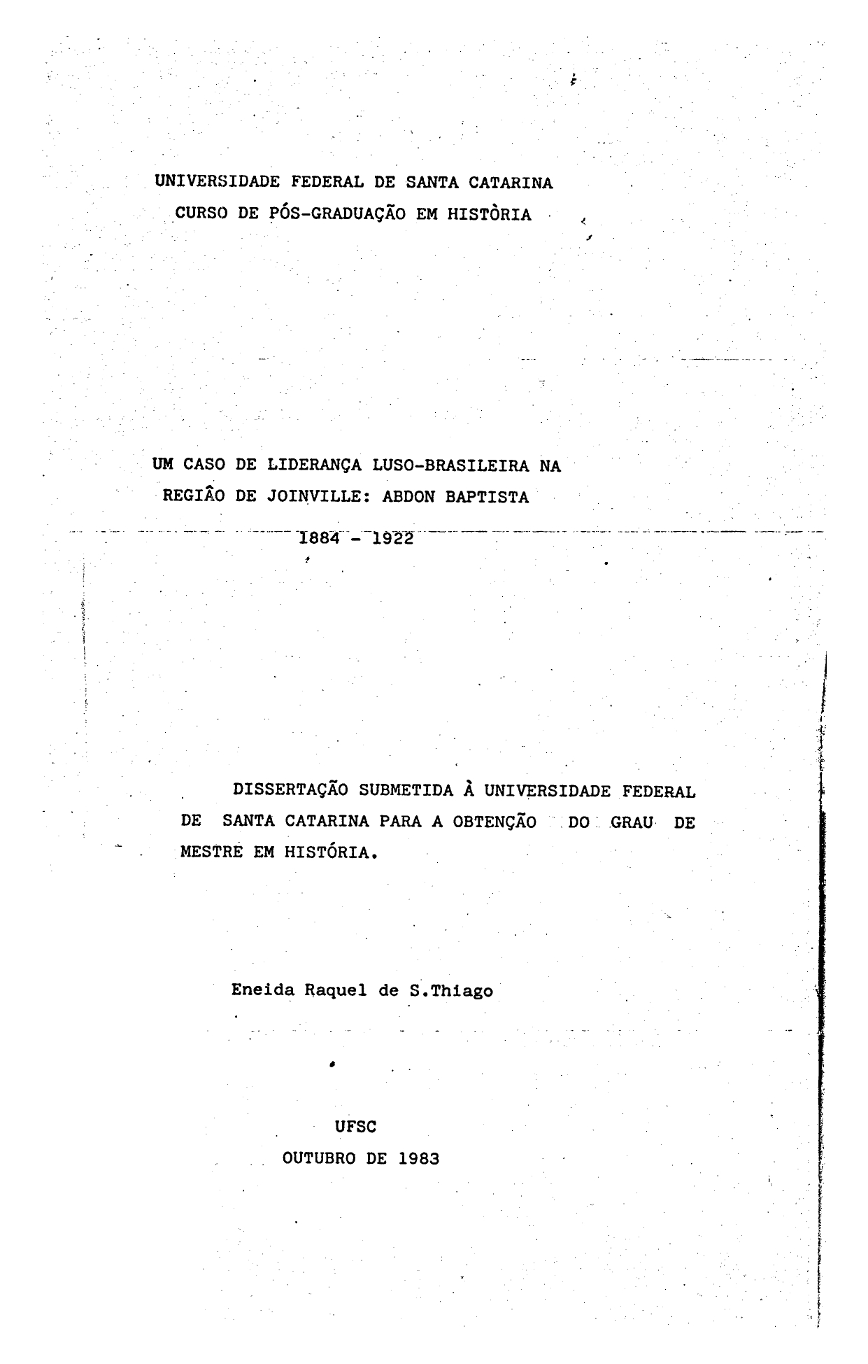 Fruto de colonização européia, notadamente a alemã, Joinville, que tem suas origens na Colônia Dona Francisca, nos seus primeiros quarenta anos de existência viveu sob liderança teuta. A partir do advento da República até aproximadamente 1922, no entanto, deparamo-nos com lideranças econômicas, políticas e sociais nitidamente luso-brasileiras. De suma importância para a ocorrência deste fato foi a conclusão da Estrada Dona Francisca, ligando o planalto do Norte-Nordeste catarinense, rico em erva-mate, com o litoral, principalmente Joinville, possibilitando, aí, o desenvolvimento da atividade ervateira. Esta foi monopolizada por um grupo familiar cujo tronco foi João Gomes d'Oliveira. A origem deste grupo foi verificada através dos laços de compadrio e de casamento, com dados das casas paroquiais de Joinville, S. Francisco do Sul e Araquari. Em 1891, com o objetivo de maiores lucros e facilidades na exportação, o citado grupo uniu-se a outros ervateiros e fundaram a Companhia Industrial, consolidando seu poder econômico. Este estende-se ao político, dando origem à "oligarquia do mate". O aparecimento do médico baiano, Abdon Baptista, em 1880, e sua posterior ligação com o grupo de parentela dos Gomes d'Oliveira através do seu casamento, foi de fundamental importância para os rumos trilhados pela política da Região de Joinville no período estudado. Conjugando o poder econômico de grande ervateiro que era, o prestígio social do grupo a que pertencia com a vocação política, Abdon Baptista teve uma atuação política na Região de Joinville de maneira tão efetiva a ponto de promover a liderança luso-brasileira numa zona de colonização germânica altamente organizada. A dissertação analisa, em sua primeira parte, a origem da Colônia Dona Francisca bem como os fatores que promoveram a passagem da liderança germânica para a luso-brasileira. Na segunda parte estuda a atuação política de Abdon Baptista, o maior representante de "oligarquia do mate" e que se projetou não só na política estadual mas também na federal. |