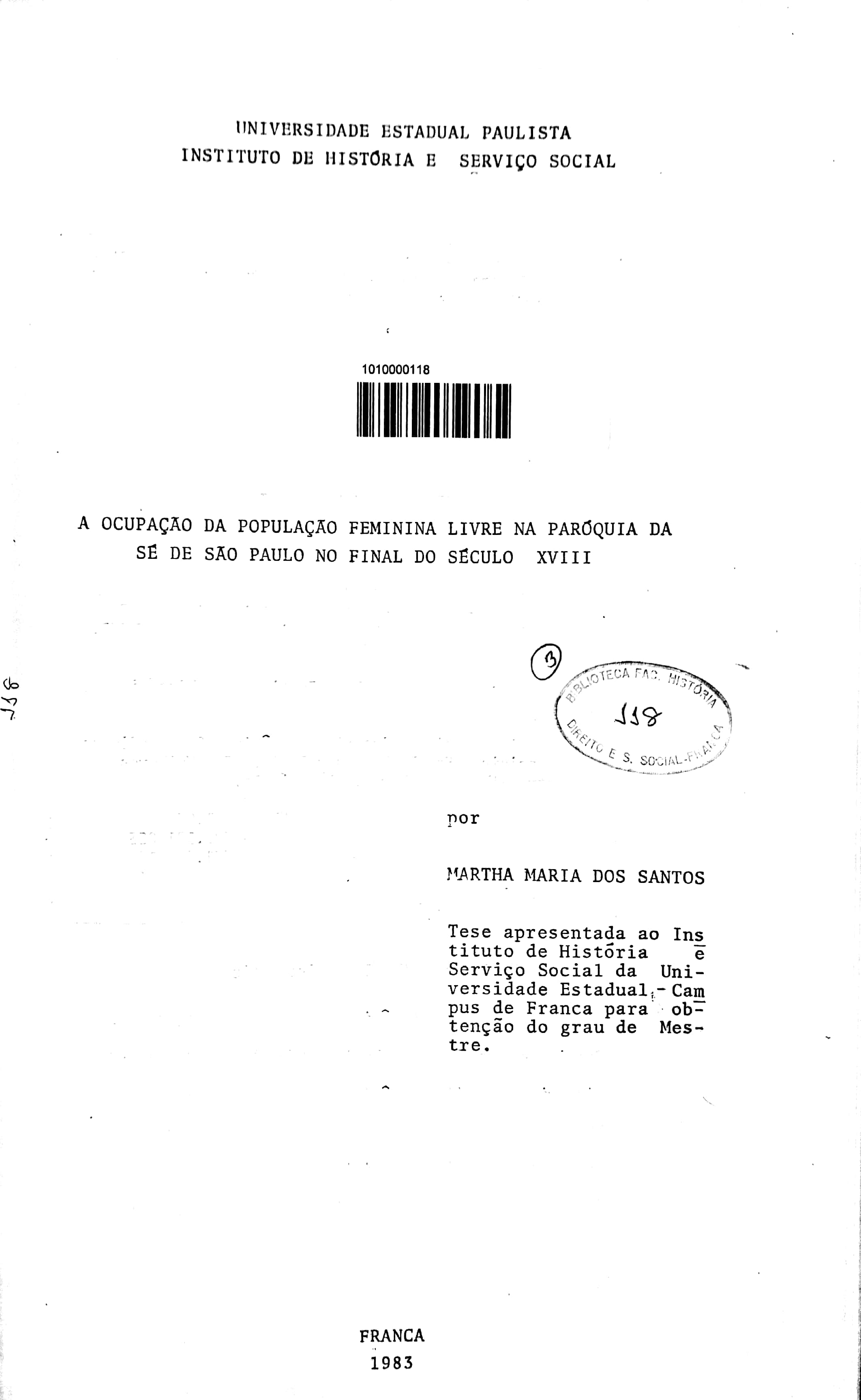 A Ocupação da População Feminina Livre da Paróquia da Sé de São Paulo no Final do Século XVIII