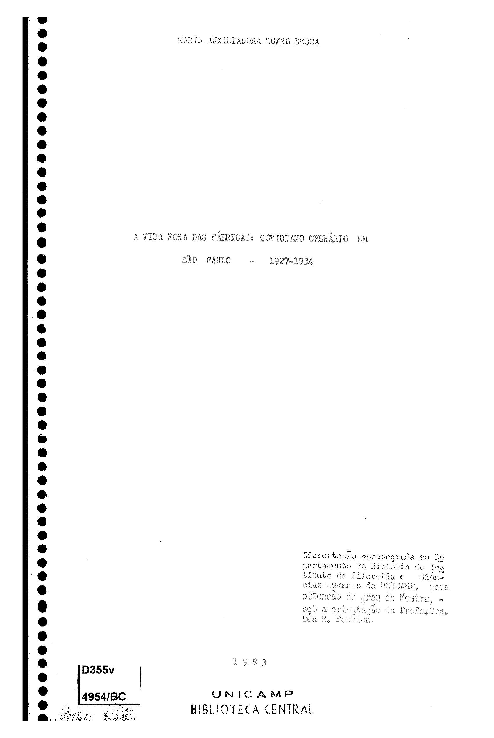 Maria Auxiliadora Guzzo de Decca (Orientador: Déa Ribeiro Fenelon)