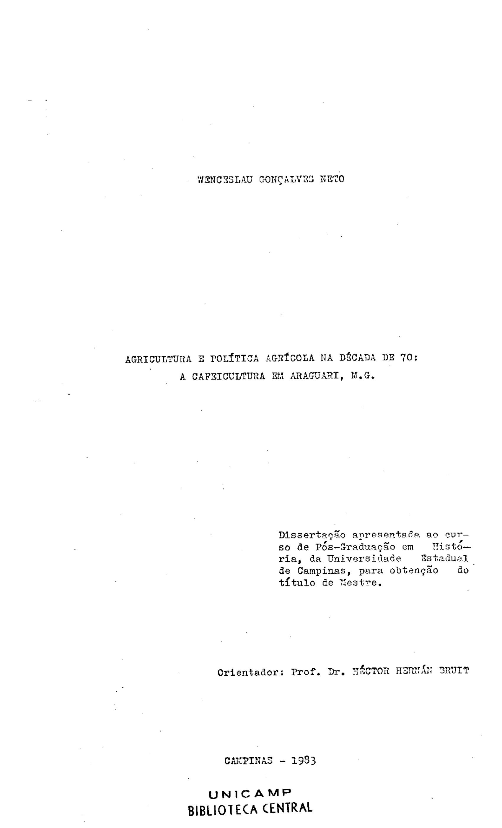 Agricultura e Política Agrícola na Década de 70: A Cafeicultura em Araguari, MG
