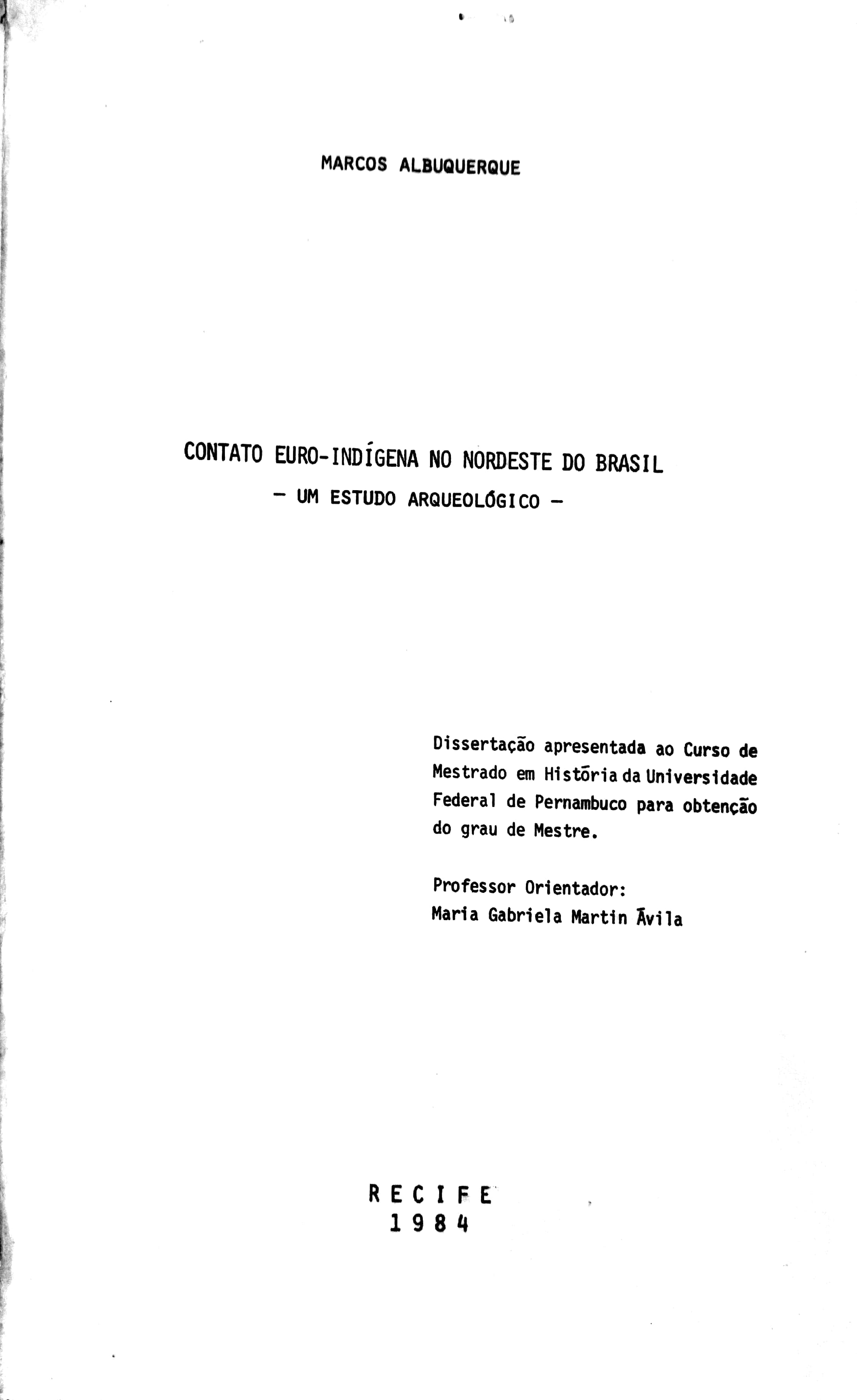 Marcos Antônio Gomes de Mattos de Albuquerque (Orientador: Maria Gabriela Martin Ávila)