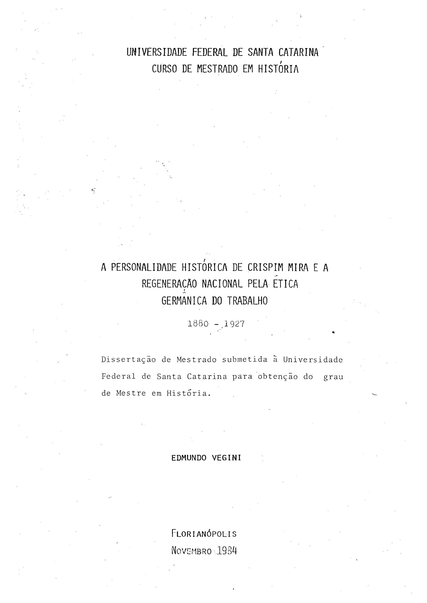 A presente Tese - A Personalidade Histórica de Crispim Mira e a "Regenração Nacional" pela Ética Germânica do Trabalho, procura discutir o significado da obra de um jornalista luso-brasileiro (1880-1927), nascido em Joinville, cidade fundada por imigrantes de origem alemã, onde cresceu e se formou, assimilando os valores sócio-culturais que se desenvolviam naquele ambiente, no seio dos quais imperava uma determinada percepção ética do trabalho. A partir desta experiência fundamentou a estrutura de todo o seu pensamento, aplicando-se à análise dos problemas do seu tempo, a Primeira República, pela pregação das virtudes da operosidade e do "espírito do trabalho" como fatores da mudança pessoal e social, capazes de transformar a realidade do país em relação aos hábitos do trabalho, promovendo uma conduta voltada para a vida ativa e para atitudes laboriosas e práticas. Em seu universo conceitual predominou uma perspectiva ético-pedagógica tendente à "regeneração nacional", por meio de modelos éticos do trabalho. Desenvolveu-se uma interpretação moral da vida política como "serviço" em favor do outro e como "dever" de participação cívica e radicou-se uma concepção do homem, da história e da vida, mediada pelo ponto de vista ético do trabalho. |