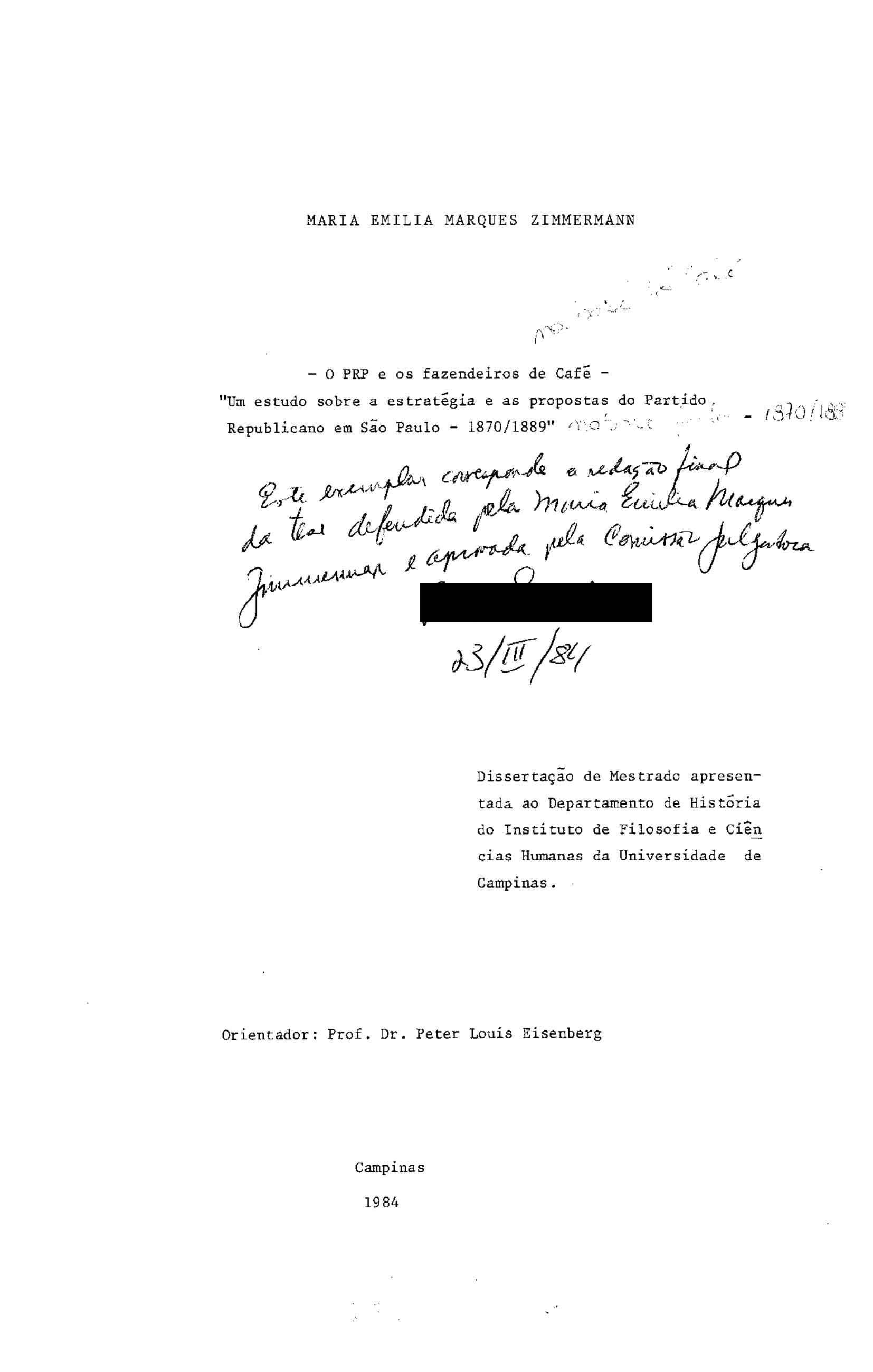 Maria Emilia Marques Zimmermann (Orientador: Peter Louis Eisenberg)