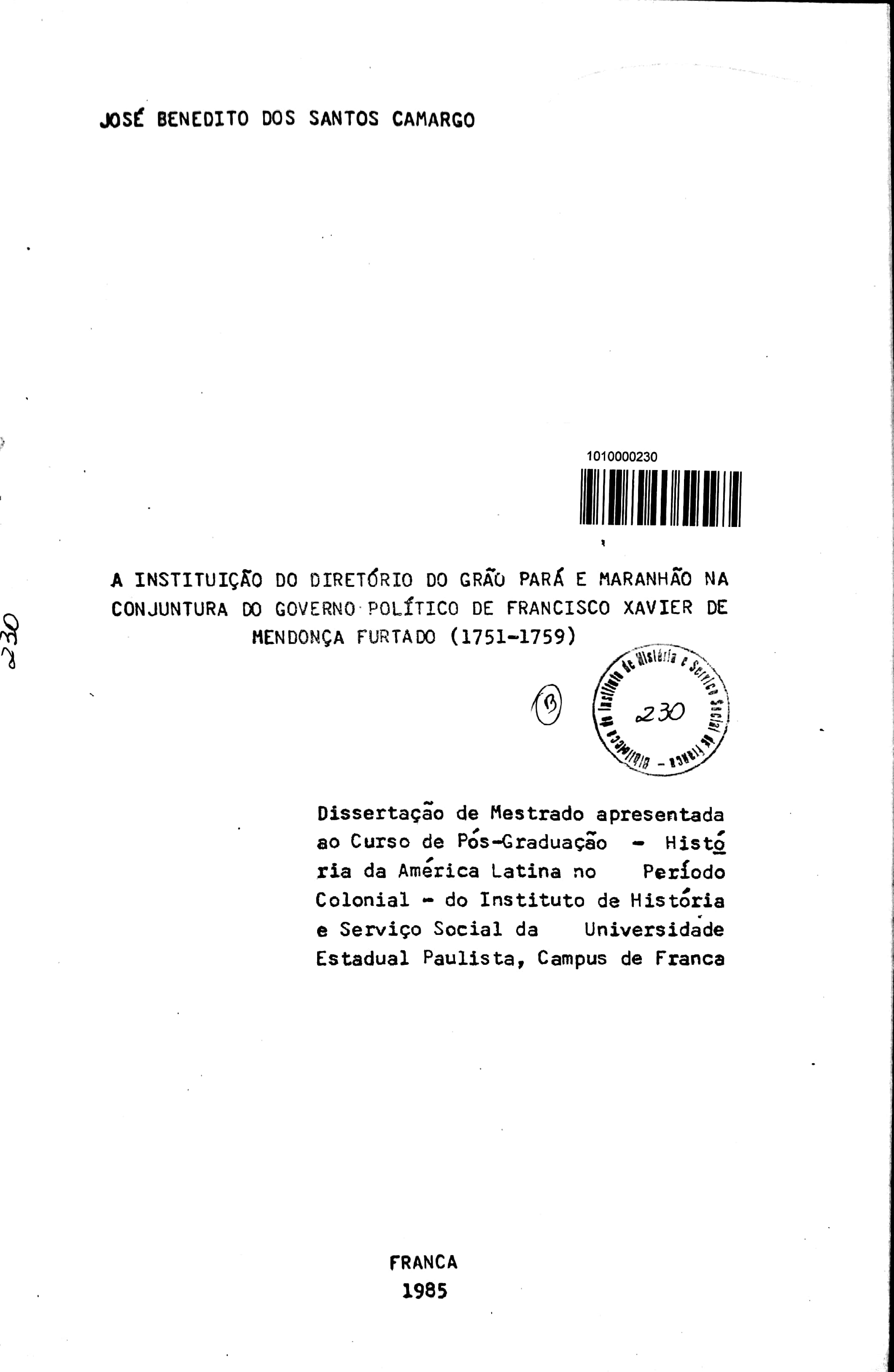 A Instituição do Diretório do Grão Pará e Maranhão na Conjuntura do Governo Político de Francisco Xavier de Mendonça Furtado (1751-1759)
