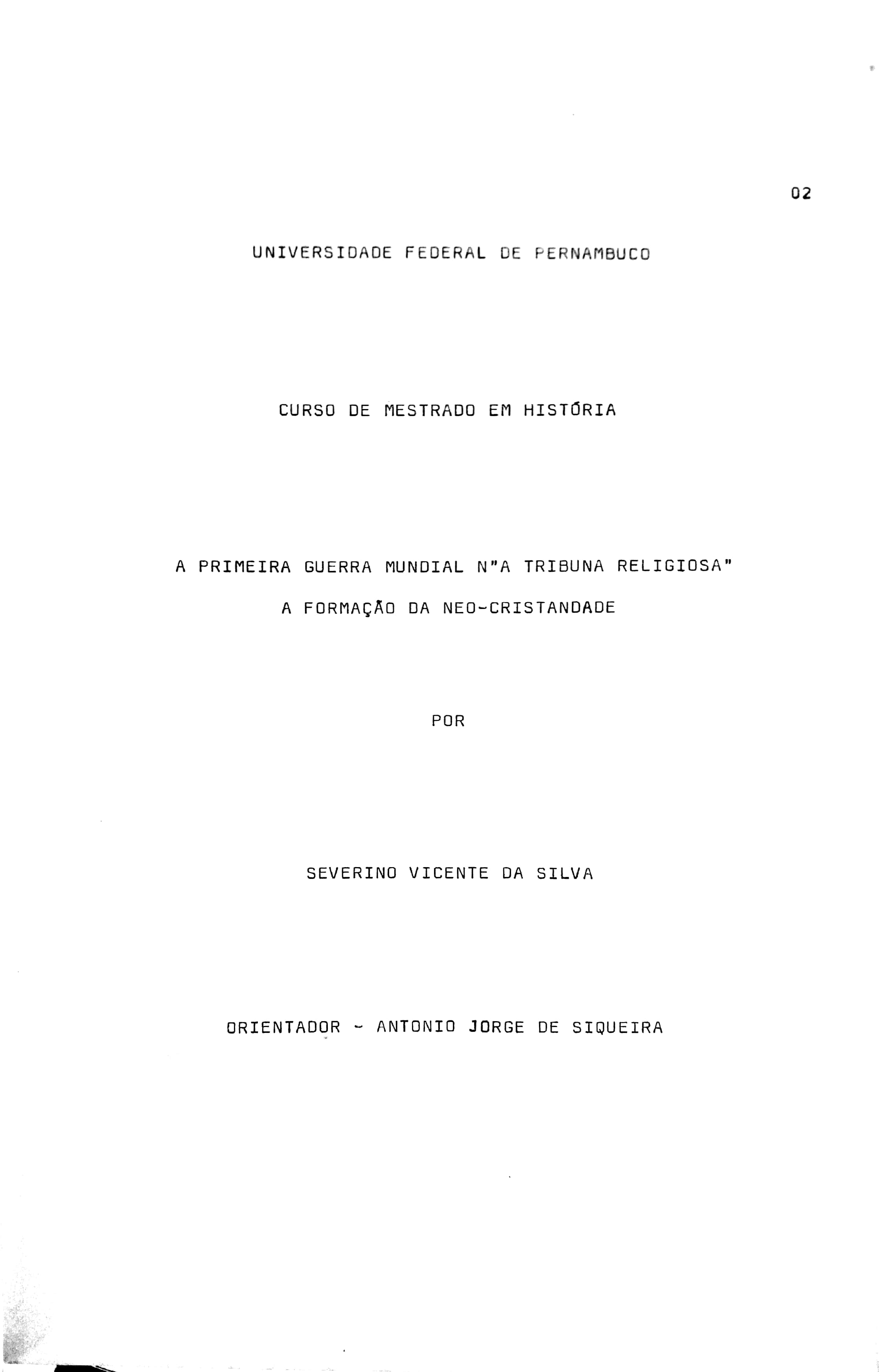 A Primeira Guerra Mundial n"A Tribuna Religiosa": O Nascimento da Neo-Cristandade